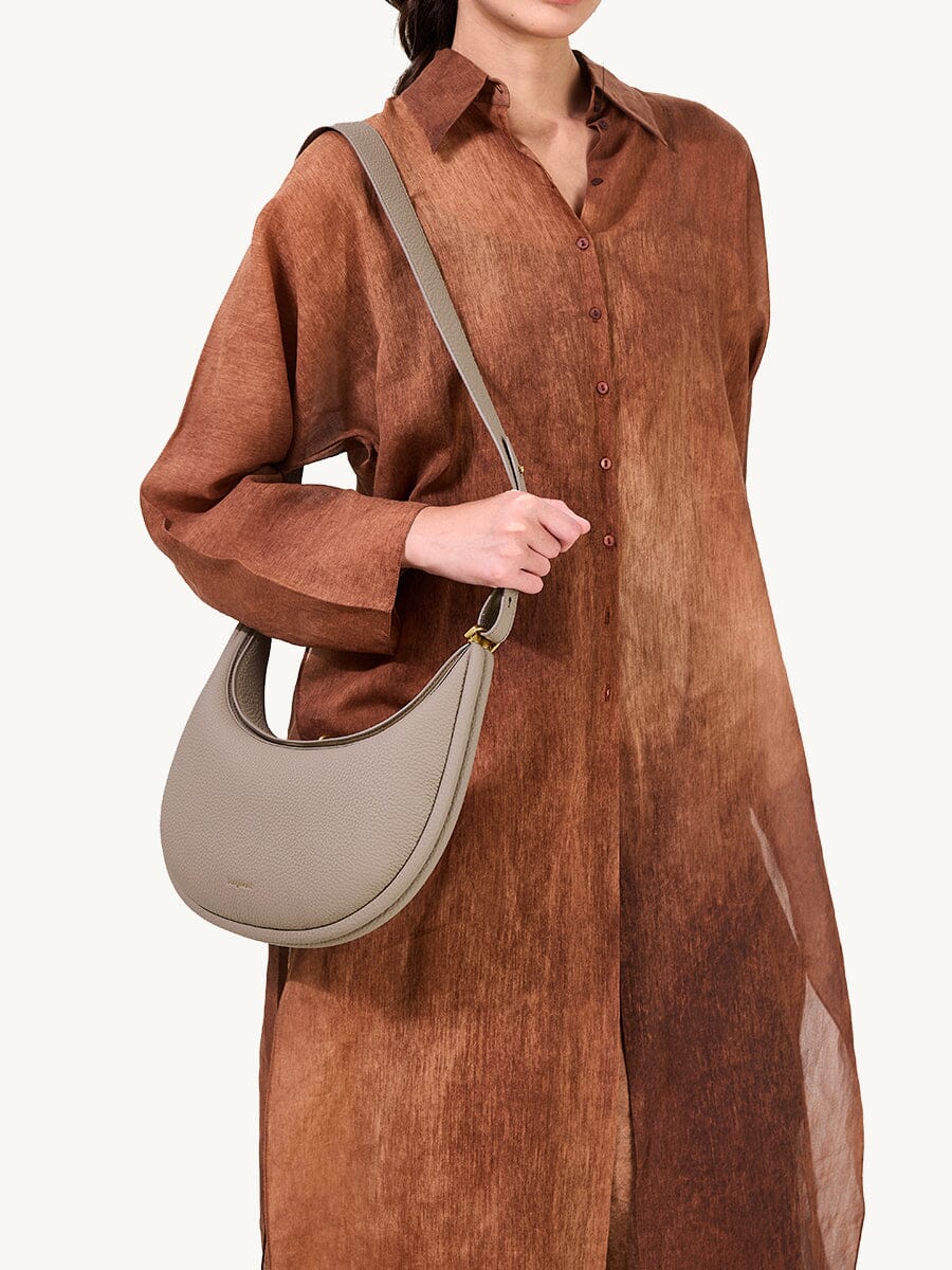 حقيبة لونا المتوسطة مصنوعة من جلد البقر الطبيعي ذو الطبقة الأولى، المشهور بملمسه الفاخر غير اللامع ومتانته التي لا مثيل لها. أثناء استخدامك لحقيبة الكتف المنحنية، يتقادم الجلد برشاقة، ويكتسب تدريجيًا مظهرًا لامعًا ودافئًا فريدًا لكل قطعة. يعد هذا التحول الطبيعي بمثابة شهادة على جودة الجلد، مما يزيد من سحر الحقيبة ويجعلها كنزًا ستعتز به لسنوات قادمة.