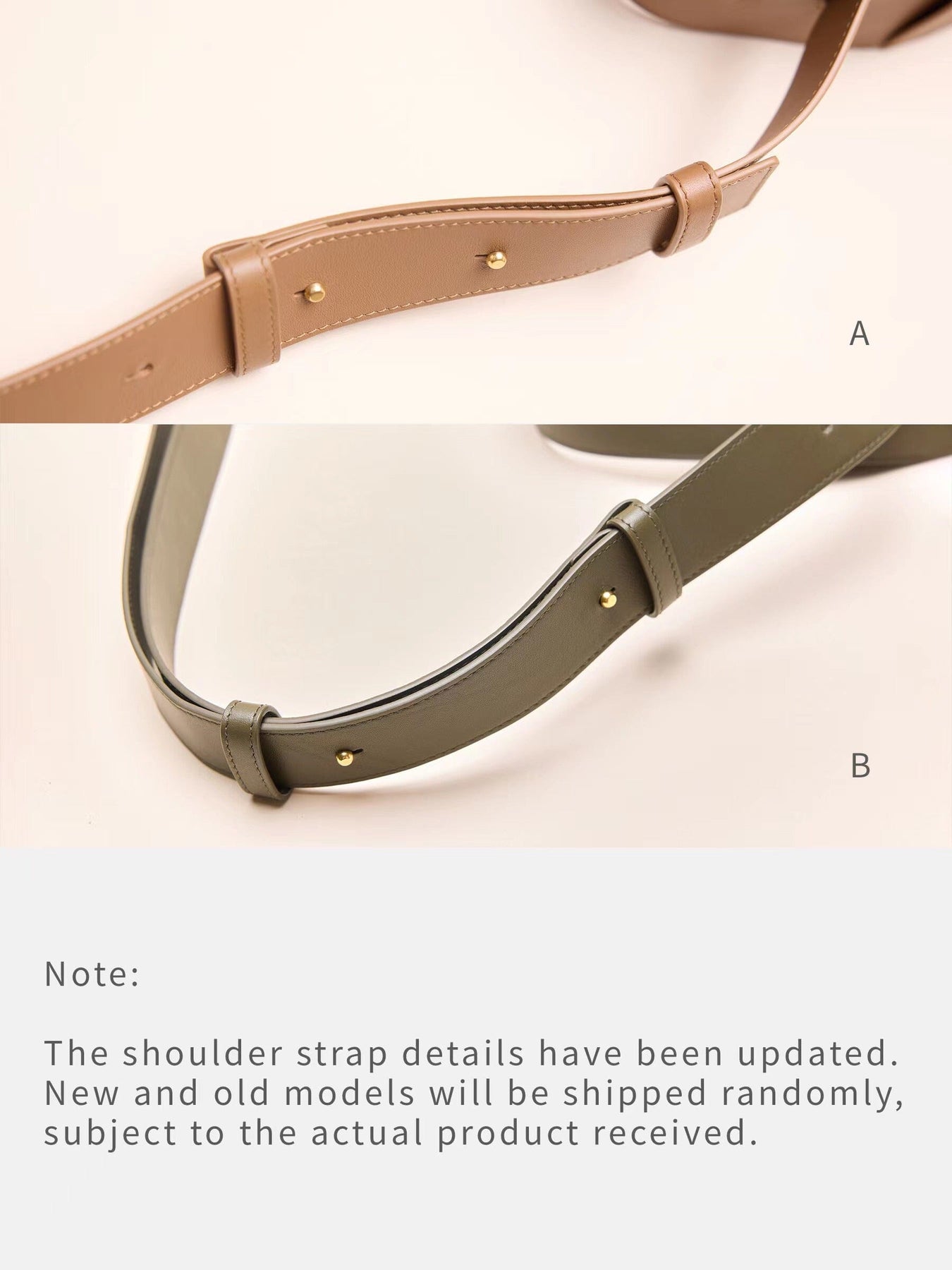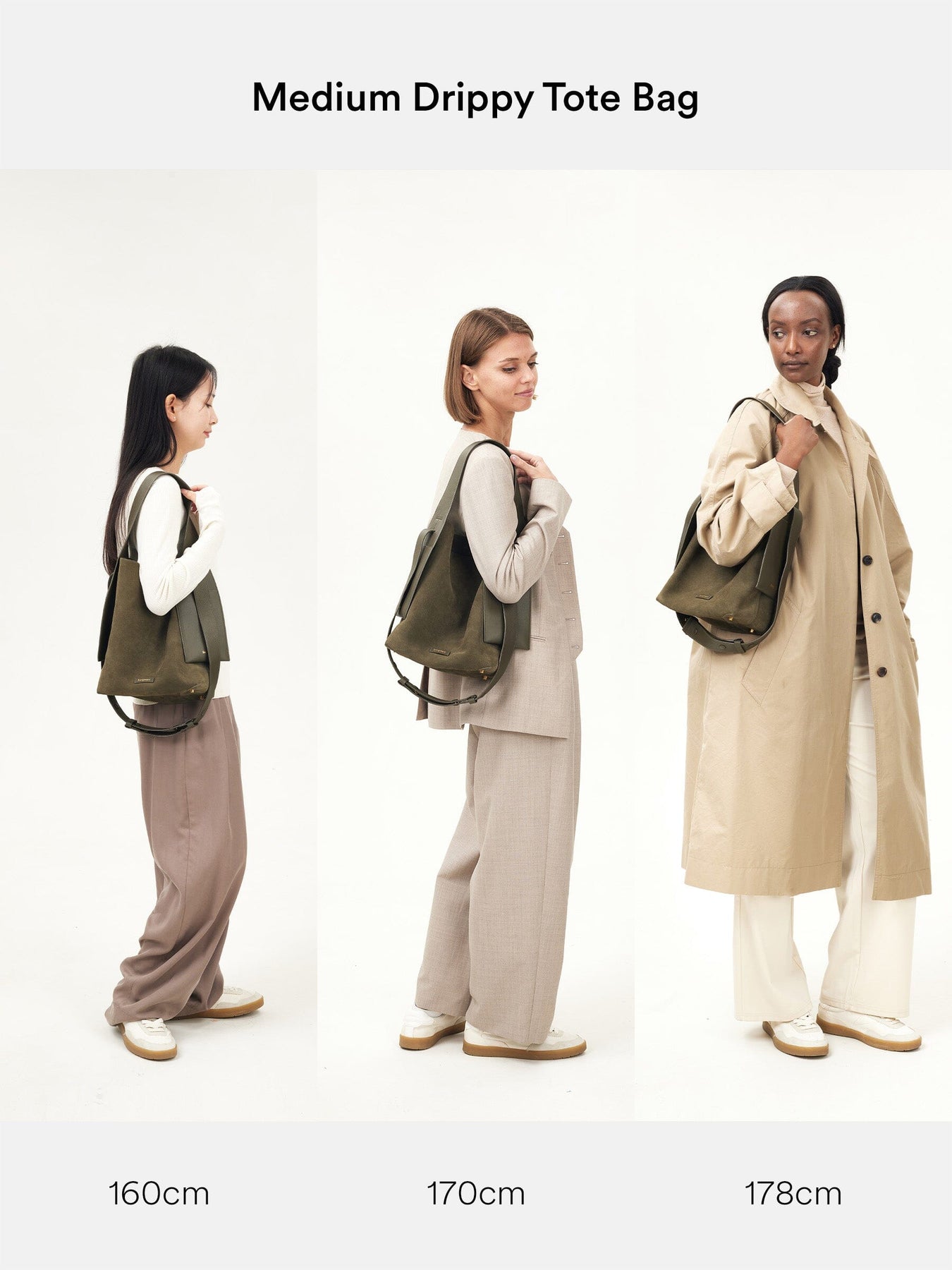 يمكن حمل حقيبة Drippy باليدين أو على الكتف أو حول الجسم بفضل حزامها المزدوج الوجه القابل للفصل، لتلبية الاحتياجات المختلفة في مختلف المناسبات. الحزام المتسع يقلل من ضغط الكتف ويمنع الحقيبة من السقوط بسهولة من كتفك. بالإضافة إلى أنها تتميز بحجم كبير من الداخل، مع جيب جانبي كبير يجعل من السهل الوصول إلى الأشياء الصغيرة. جلد العجل مبطن في الأسفل، لذلك لن يتشوه حتى عند حمل الكثير من الأشياء بالداخل. 4 مسامير للقدم في الأسفل تحمي الجزء السفلي من الحقيبة من البقع أو الخدوش.