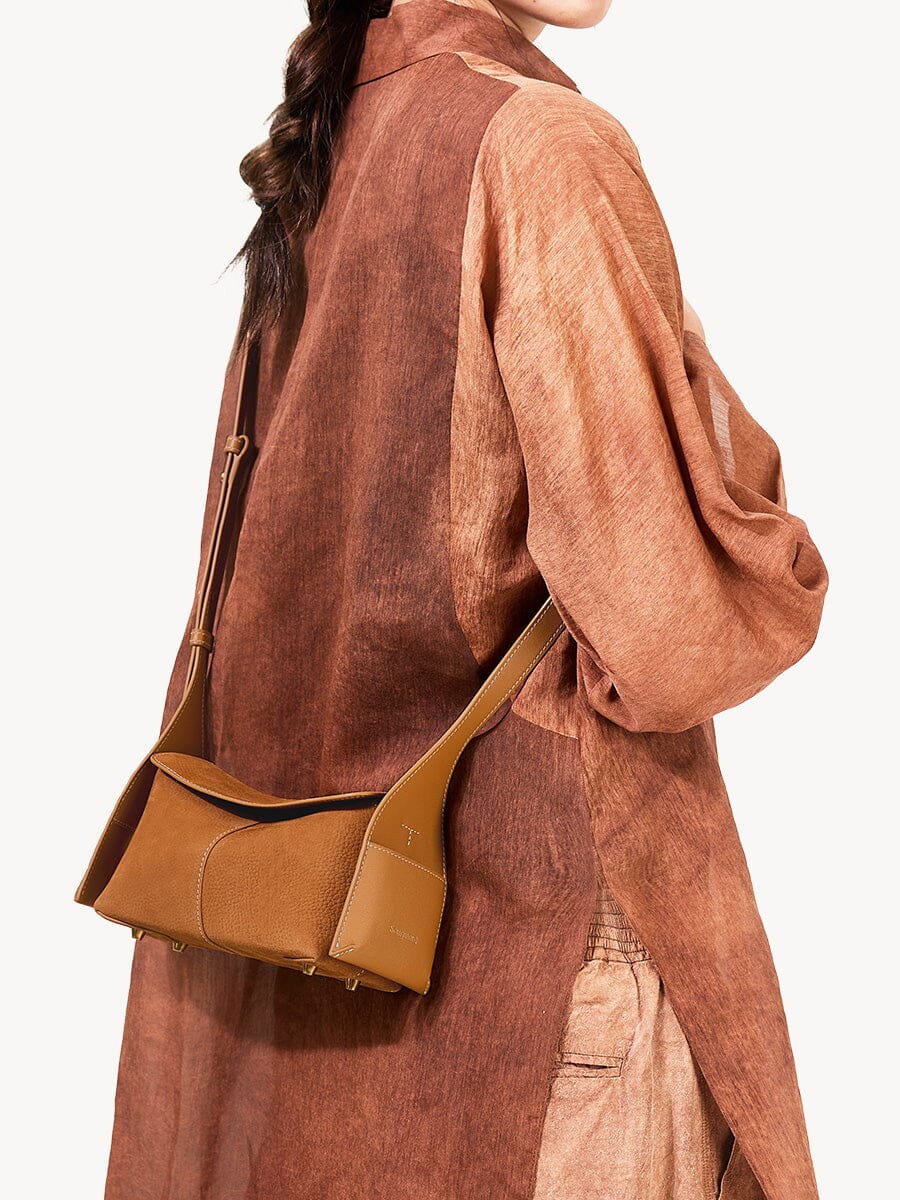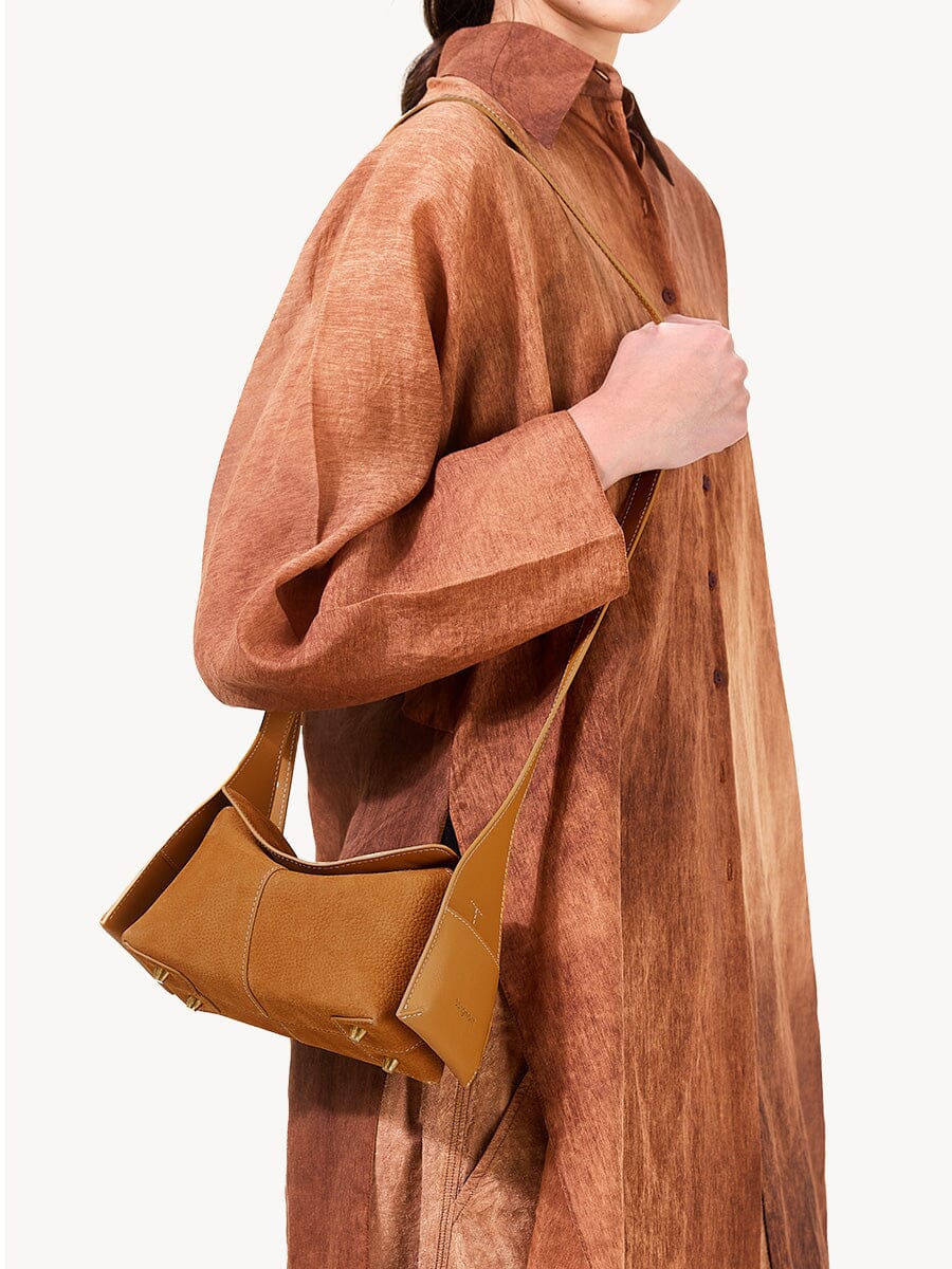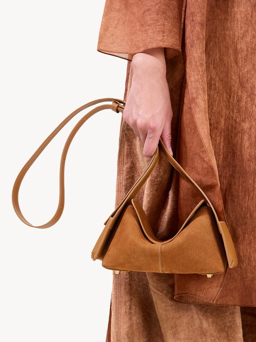 صُنعت حقيبة Mini Drippy Roof المصنوعة بدقة من الجلد الفاخر، لتحقيق التوازن المثالي بين الهيكل والنعومة. على الرغم من حجمها الصغير، إلا أنها تتسع لضرورياتك مع الحفاظ على صورة ظلية عضوية انسيابية، مما يمنحك أسلوبًا سهلاً.
