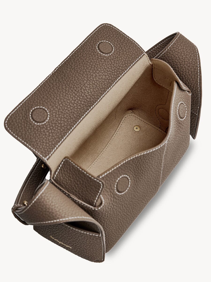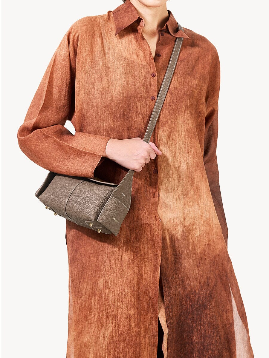 صُنعت حقيبة Mini Drippy Roof المصنوعة بدقة من الجلد الفاخر، لتحقيق التوازن المثالي بين الهيكل والنعومة. على الرغم من حجمها الصغير، إلا أنها تتسع لضرورياتك مع الحفاظ على صورة ظلية عضوية انسيابية، مما يمنحك أسلوبًا سهلاً.