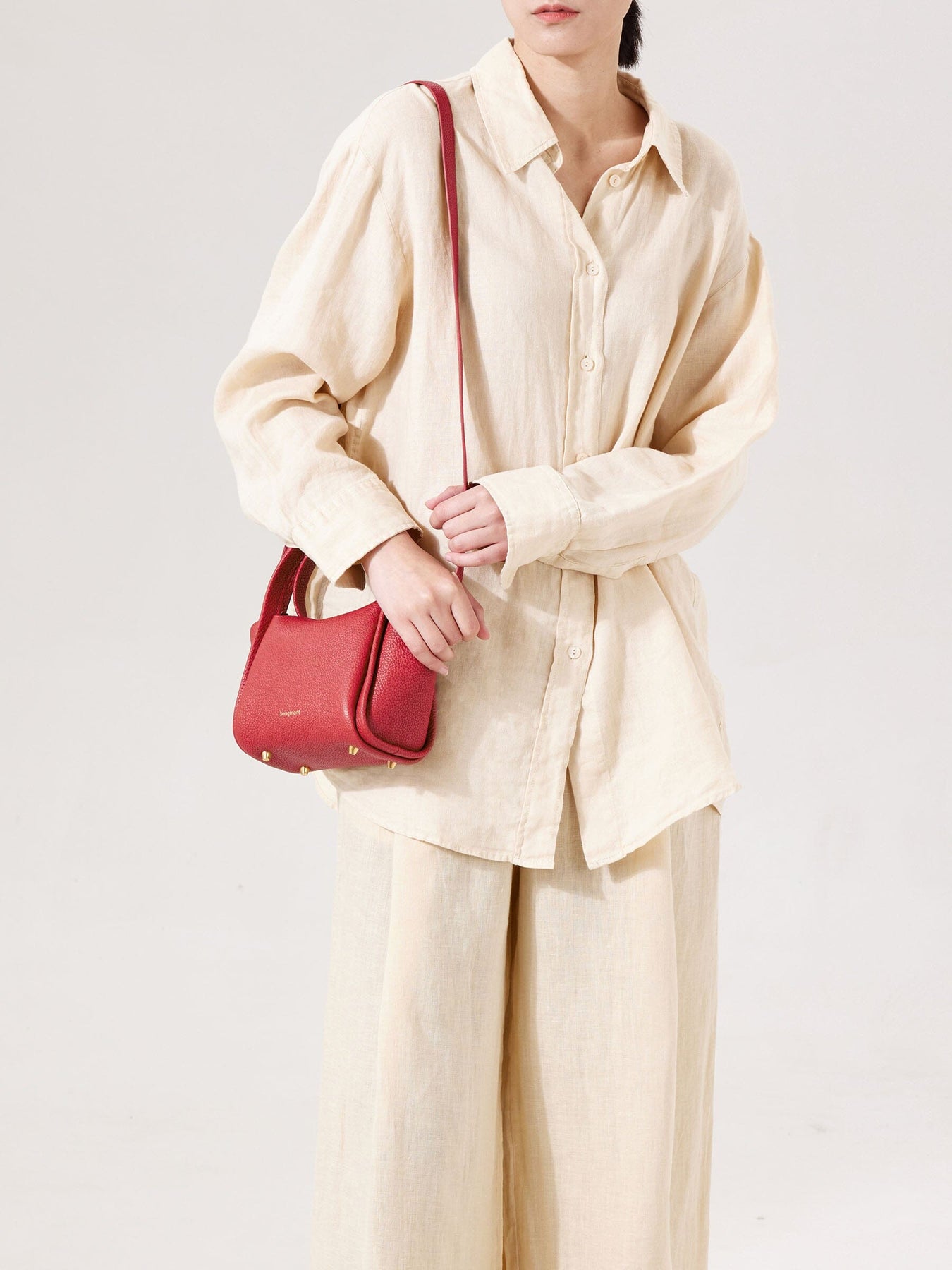 احملي هذه الحقيبة الجلدية الصغيرة الرقيقة كإكسسوار مميز يضفي على أي مجموعة طبقة إضافية من السحر.