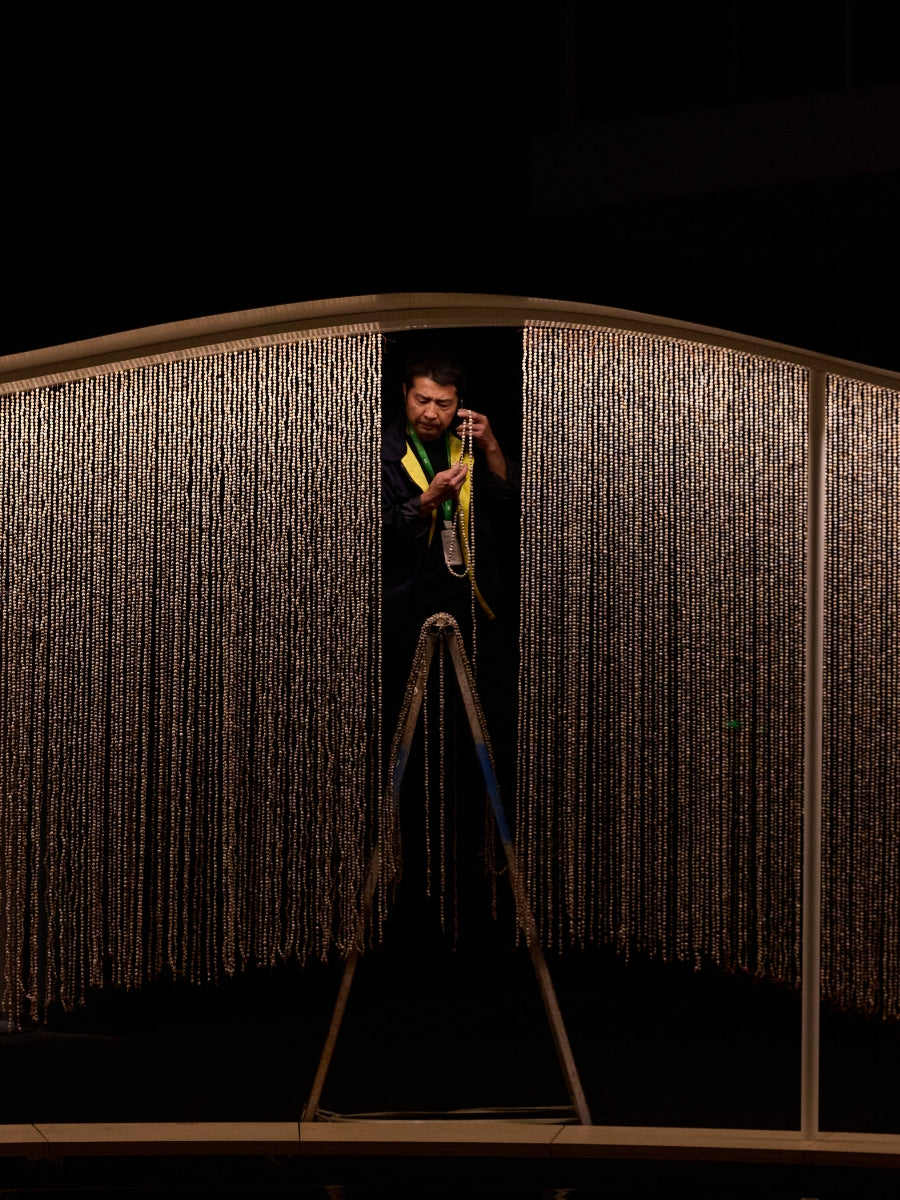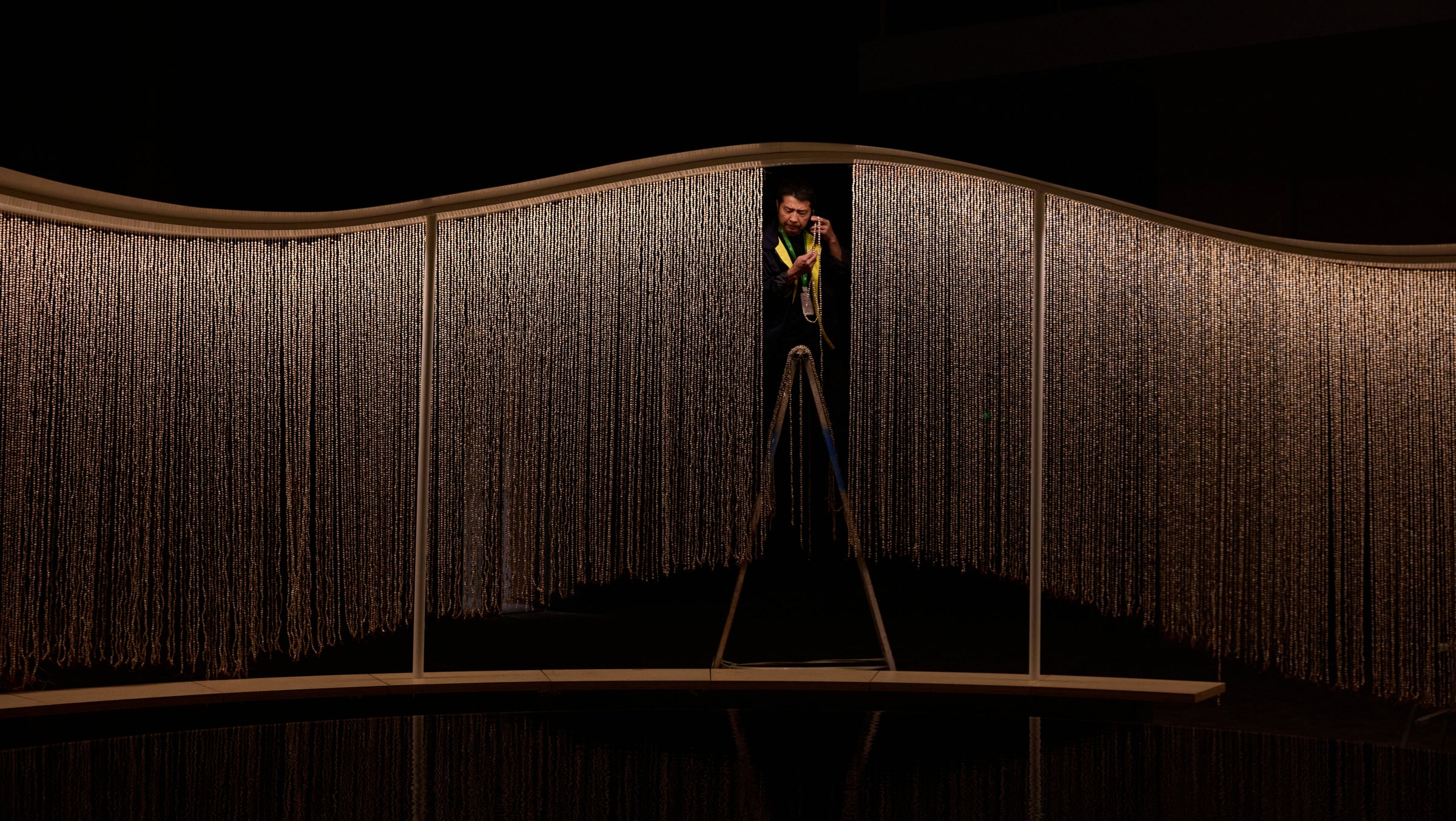 The exhibition begins with wind. Parting a curtain of bodhi seeds, meticulously strung together by deaf-mute artisans, visitors become seeds themselves, invited by the wind to embark on this journey. Here, whether sitting or strolling, the wind ceases to be abstract—it brushes past you, sparking collisions or rippling the water's surface. The undulating trace of curves, like the whisper of the wind, flows freely and lightly, gently awakening your awareness of nature.