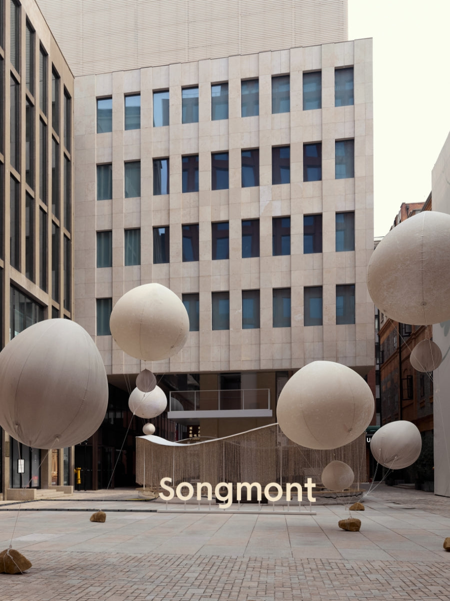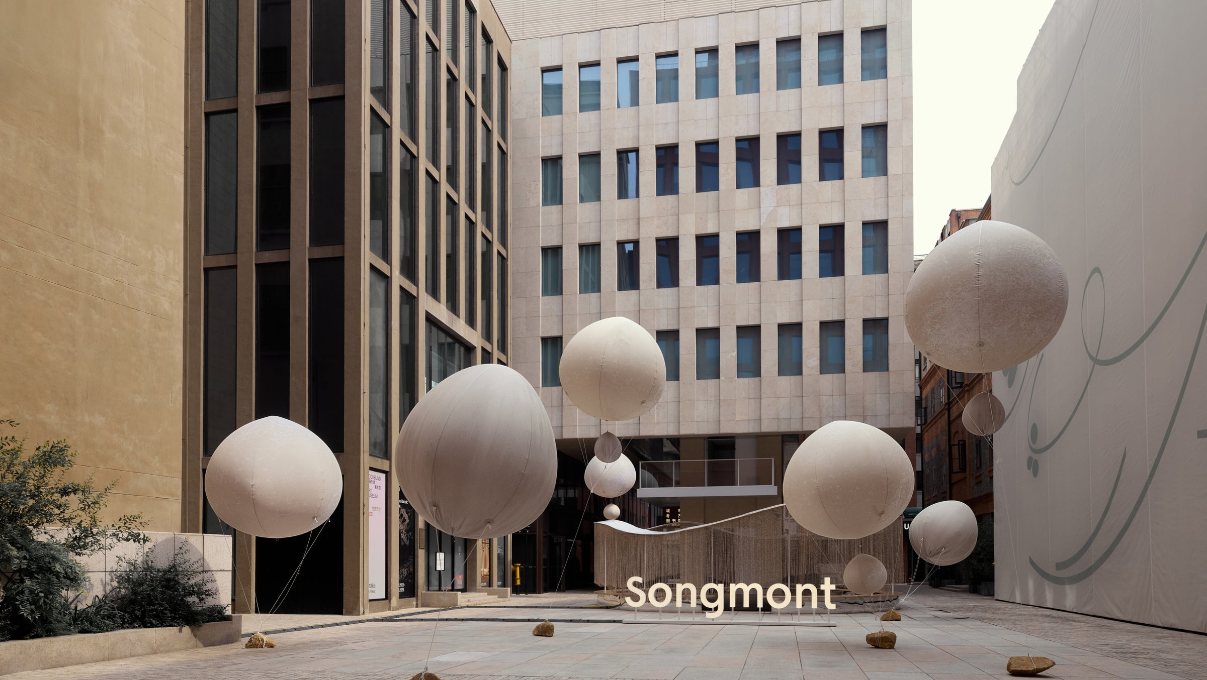 Scattered across the plaza, seed balloons capture the shapes and textures of real seeds. As if gently lifted by the wind, they leave trails of inspiration floating in this space, reflecting Songmont's creative milestones over 12 years. Throughout its journey, thought has been the seed's inner compass, guiding its path through the wind. It determines the soil where the seed lands and the stance it takes as it grows.
