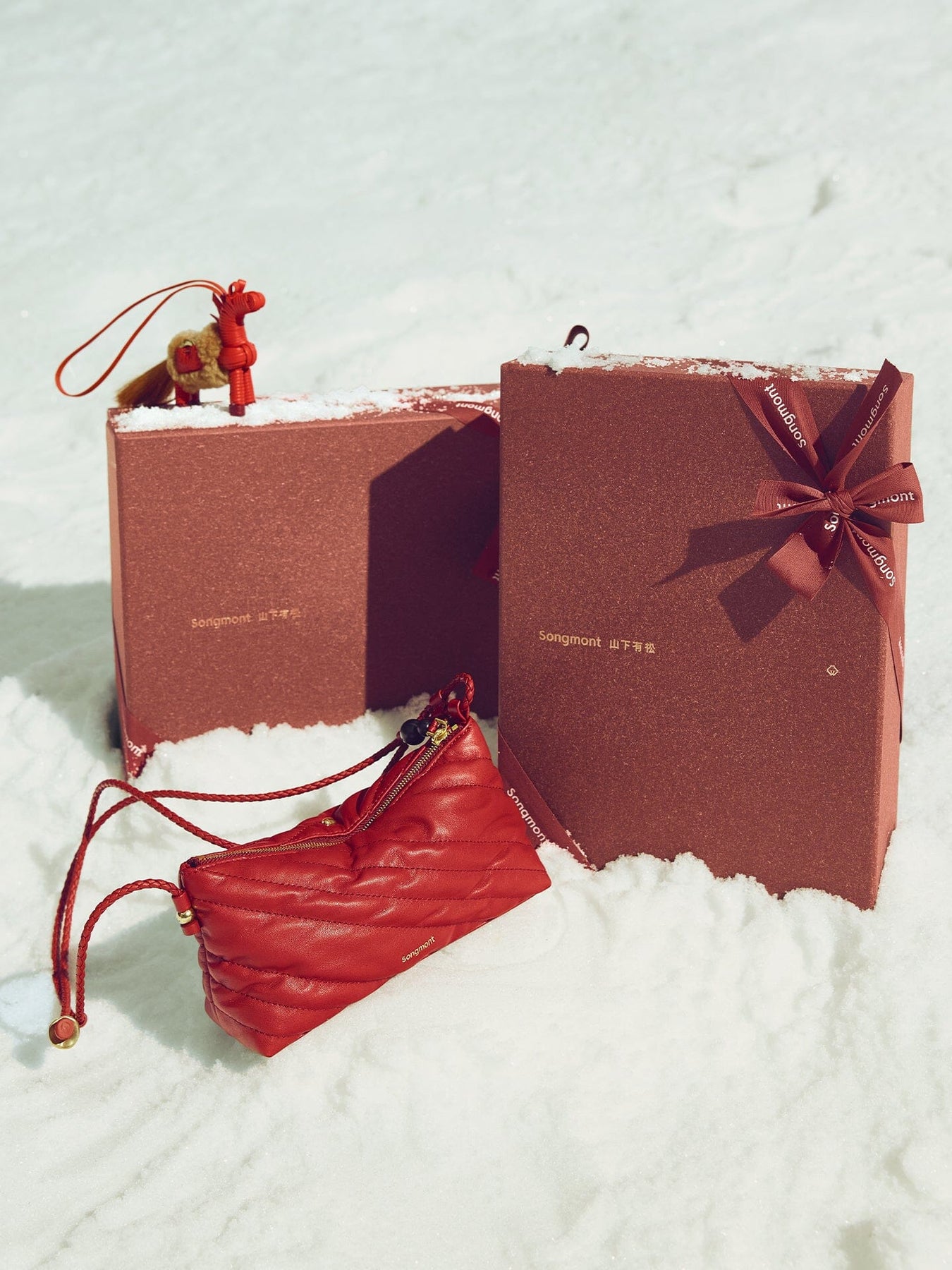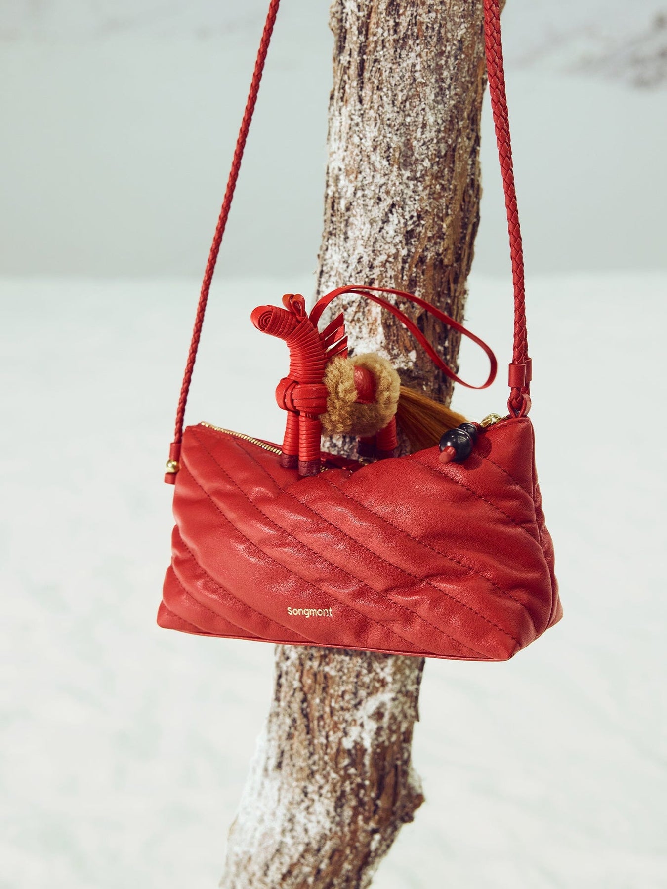 Naturally quilted milk-fed calfskin meets a sand-hued, screen-printed lining—balancing elegance inside and out. Inspired by the textures of riverbanks, the bag reveals a unique visual depth and tactile softness. Quilting holds fortune close, while the mesh lining gathers good luck along the way.