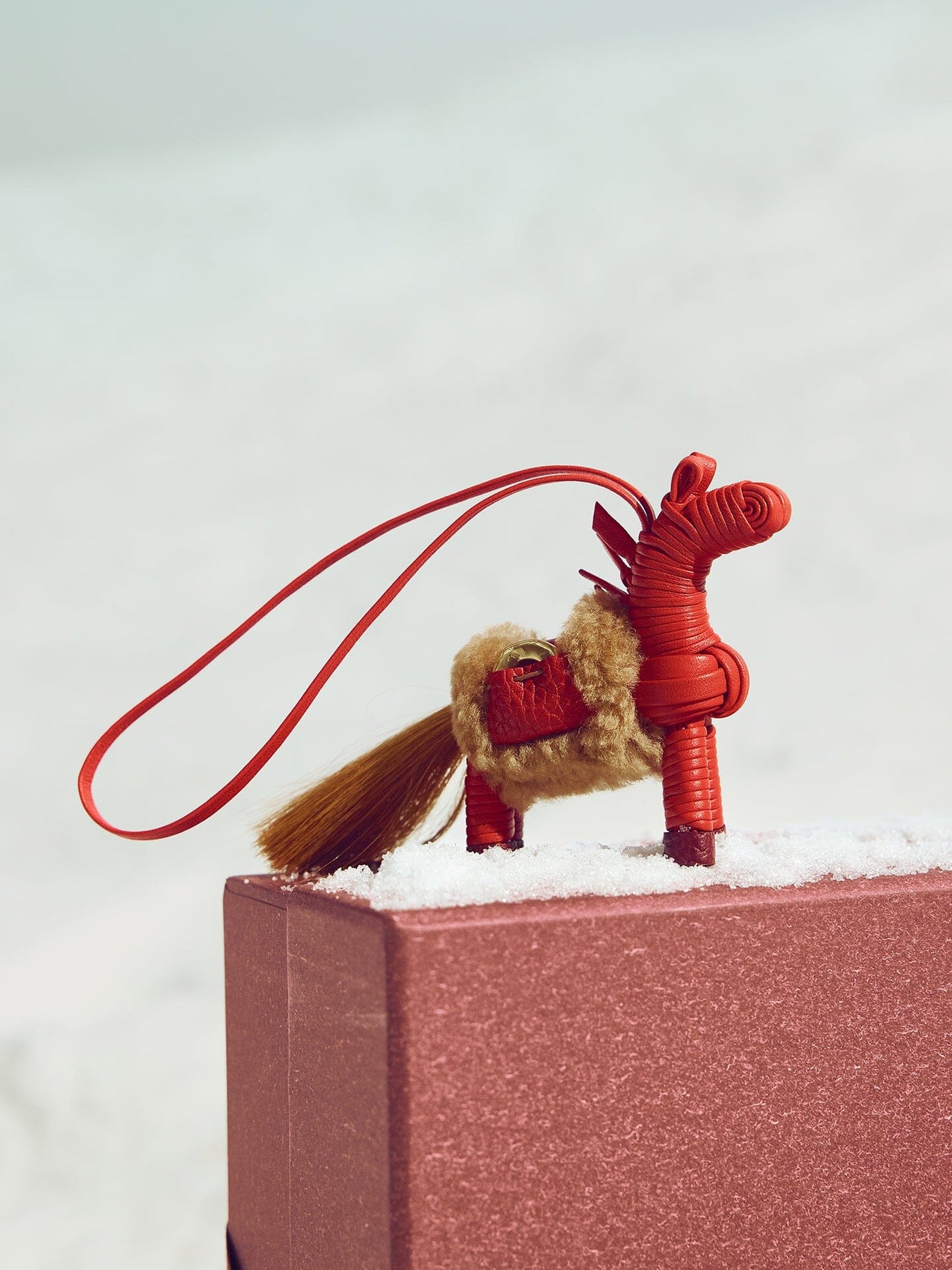 Each pony is entirely hand-woven by our craftsmen—head and front legs first, then the body and hind legs—its meticulous construction giving every piece a singular, quiet beauty.Crafted from supple Nappa leather, each one is made to carry a lively, galloping gesture.