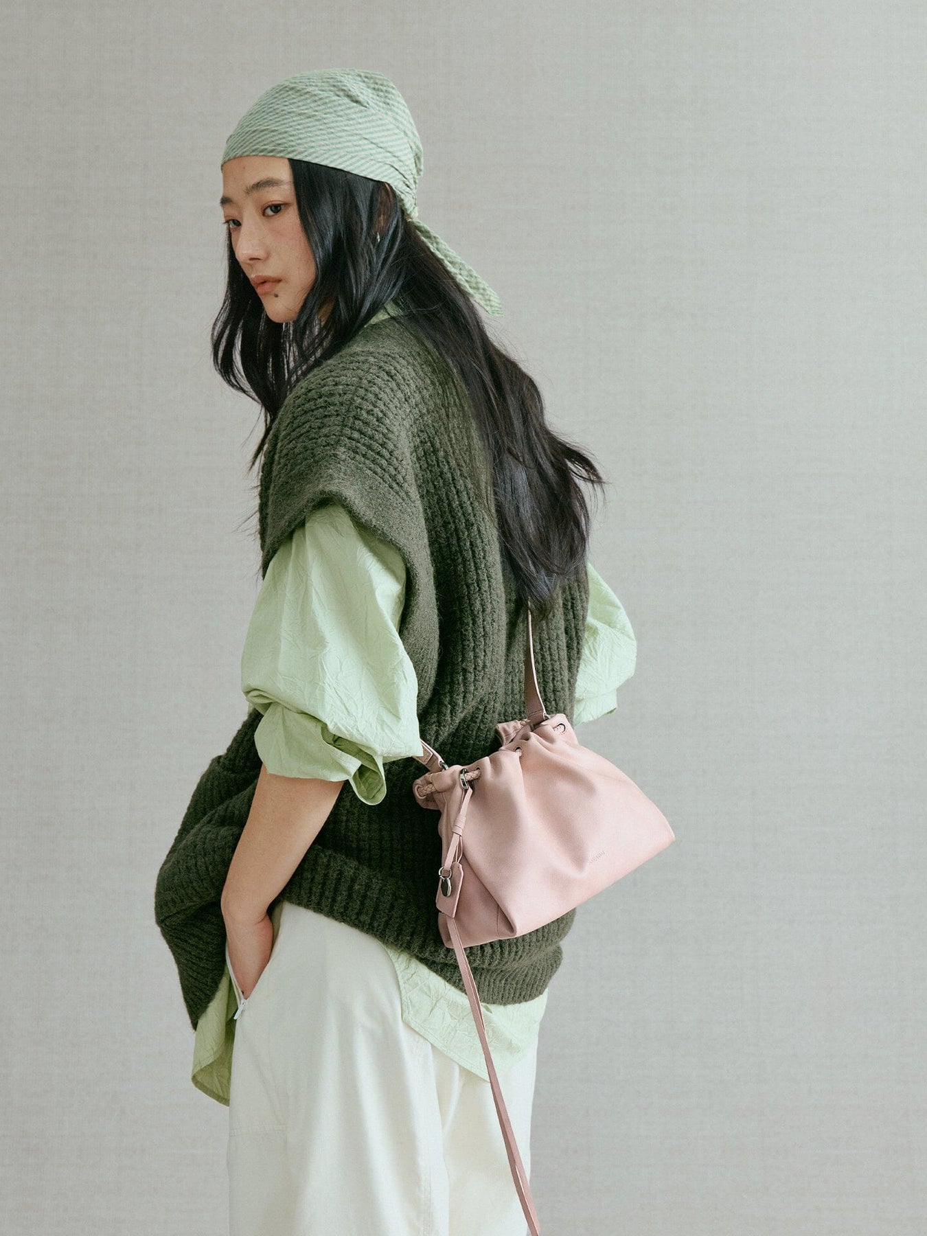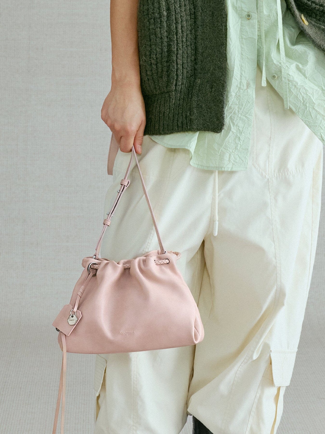 The handle can be magnetically attached to the back of the bag when using the long shoulder strap. Multiple charm holders allow you to add various accessories. The Blessing Plaque Charm, paired with the bag, embodies the carefree spirit of nomadic life, symbolizing ease, freedom, and the shedding of all worries.