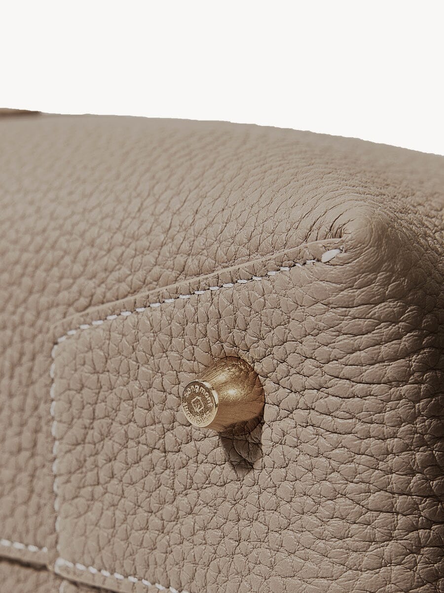 Boasting ample space for your belongings, this medium leather tote bag transforms mundane daily tasks into stylish endeavors. The easy-to-access side pocket makes organization a breeze, while the removable strap offers several carrying options.