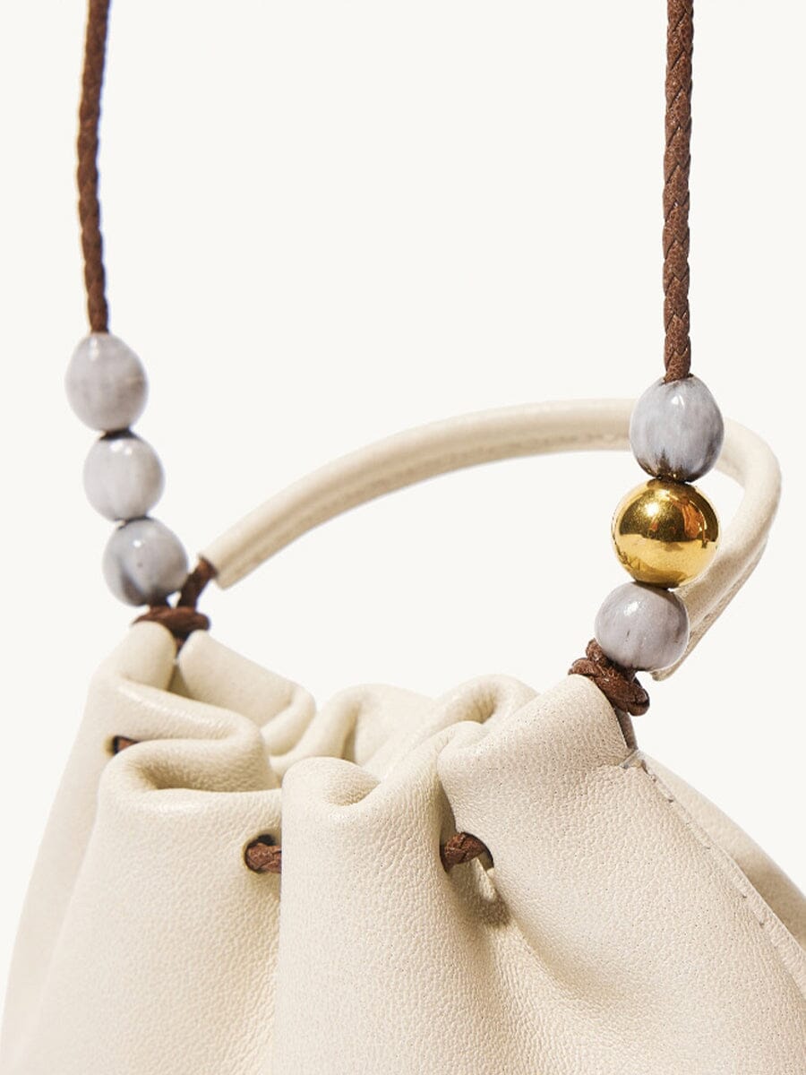 The Lucky Pouch Charm is inspired by traditional pouches that ancient people used to carry coins and jewelry. Designed in the shape of a Chinese lucky bag and adorned with distressed-style beads and Job's tears Bodhi seeds, it symbolizes the attraction of wealth and prosperity.