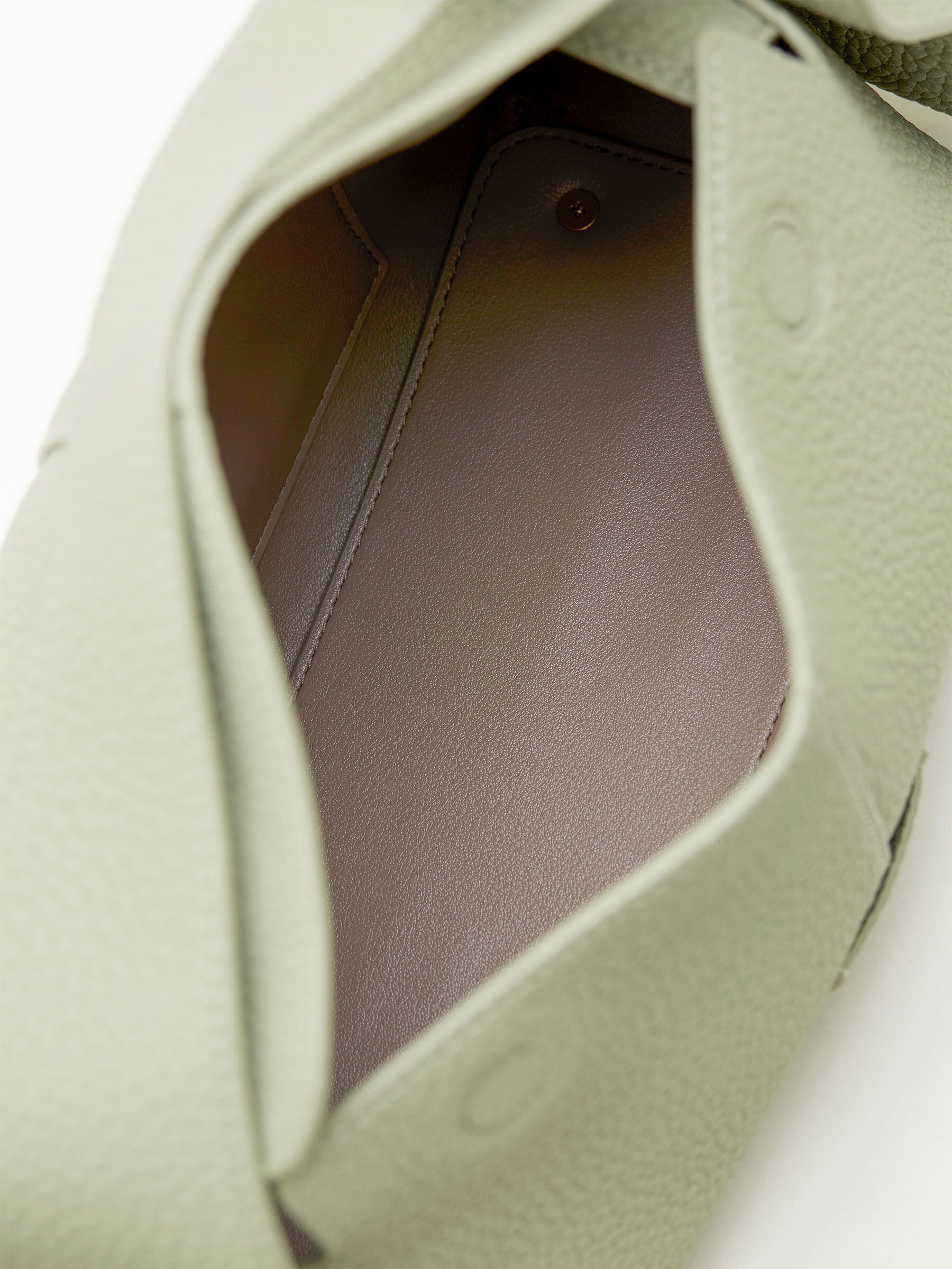 Indulge in the artistry of the small Drippy Roof Bag, meticulously crafted with premium leather that offers a structured shape with a supple touch. It forms a relaxed and organic streamlined silhouette when filled with your belongings, creating an effortless style.