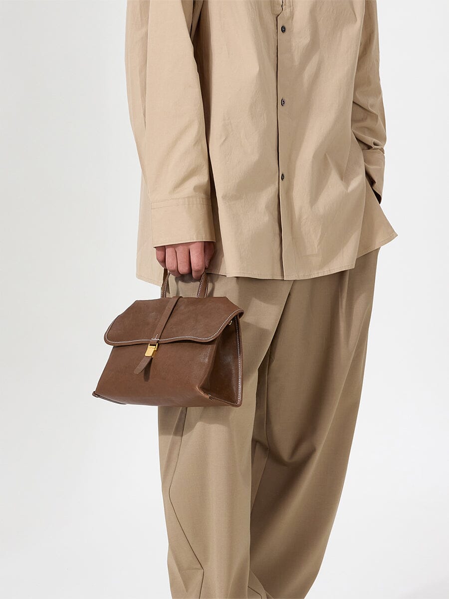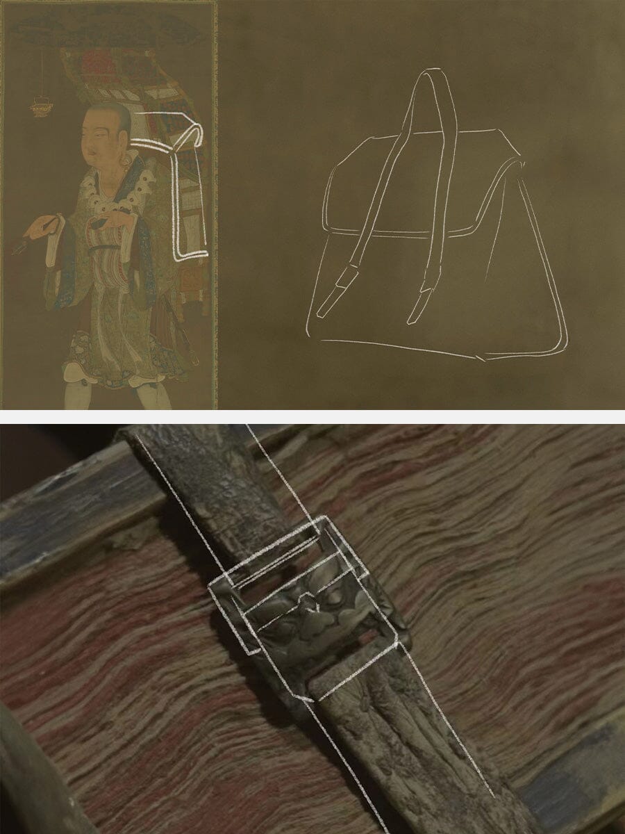 "Shan," a journey over mountains, inspires this collection, echoing monks' satchels with airy lightness and comforting ease for every path.Drawing inspiration from the book bags of wandering monks, we craft the lightweight yet textured bag body. The hardware buckle is modeled after book clasps, utilizing a jewelry-grade vacuum-electroplated manufacturing process that imparts a vintage feel.