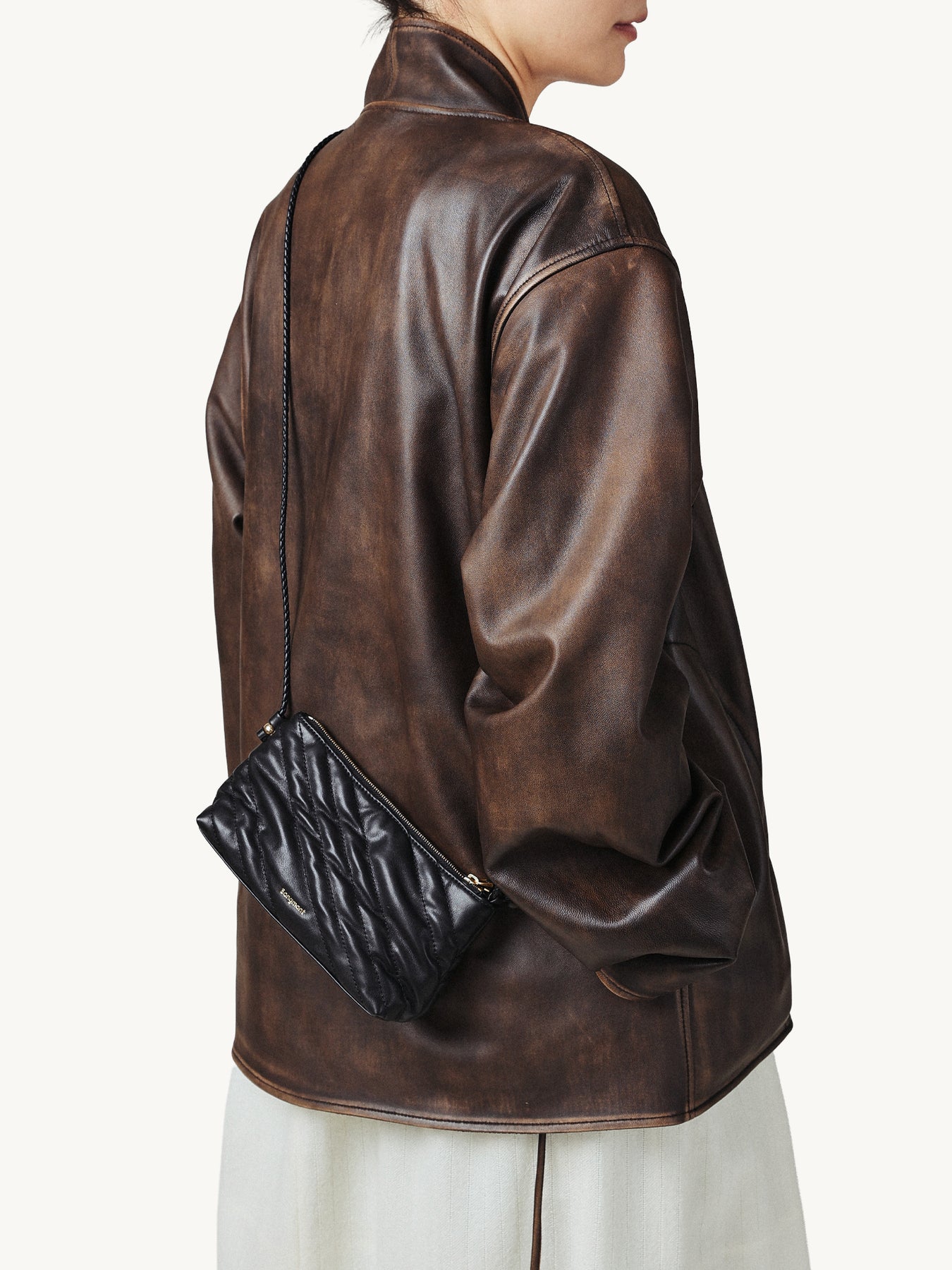 ナチュラルなキルティングを施したミルクフェッドカーフスキンと、砂色のスクリーンプリントの裏地が融合し、内外のエレガンスのバランスが取れています。川岸の質感からインスピレーションを得たこのバッグは、独特の視覚的な深みと触感の柔らかさを表現しています。キルティングが幸運をしっかりと閉じ込め、メッシュの裏地が幸運を引き寄せます。