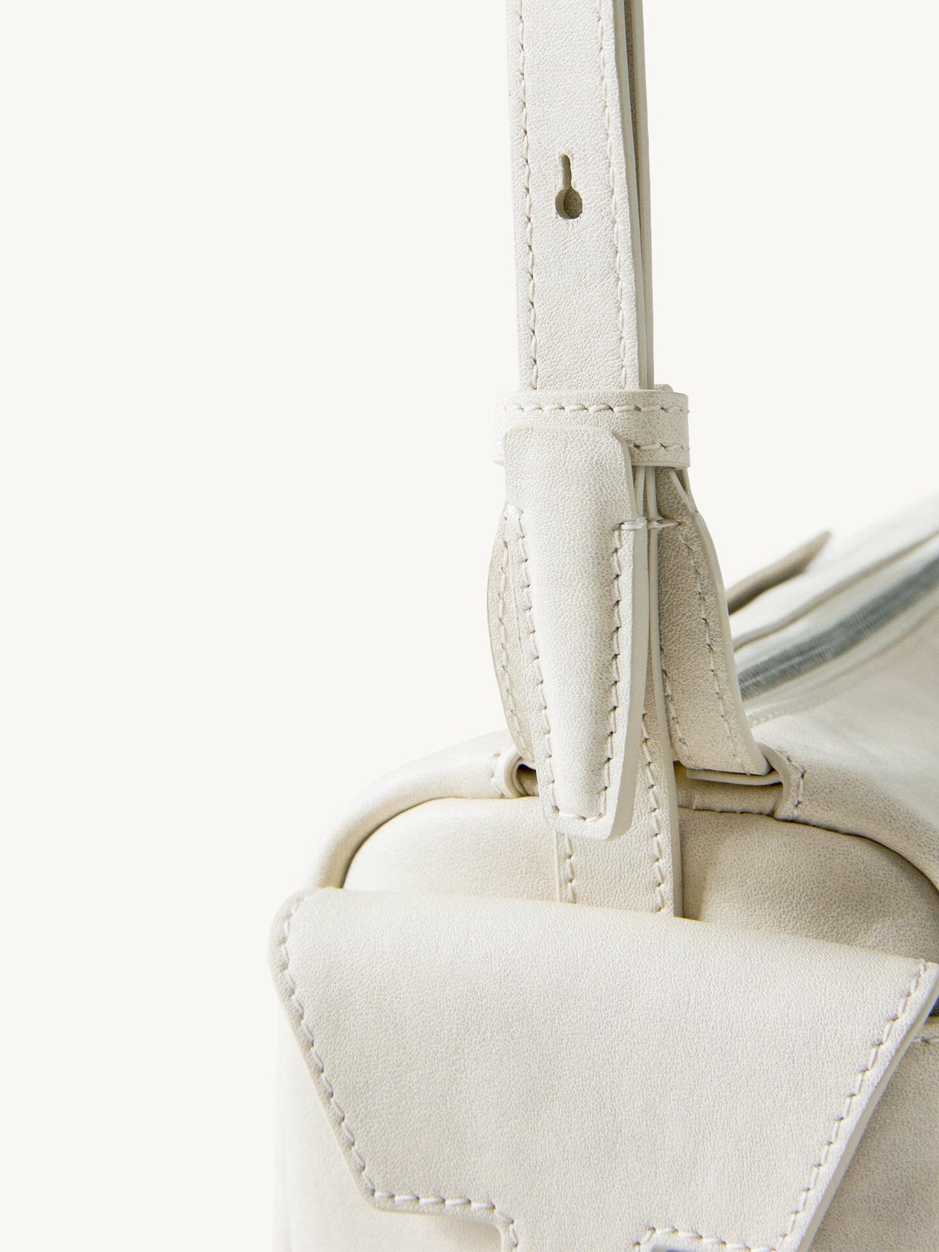 このミニ カメラ バッグは、Yore コレクションの特徴である虎の歯のディテールを軽量サイズで継承しています。コンパクトでありながら、必需品を収納できる十分なスペースを備えており、負担なく快適な旅をお約束します。スタイリングに多様性があり、バイカーにインスピレーションを得たエッジのタッチをもたらしながら、ディテールの中に繊細なクラフトマンシップを隠しています。