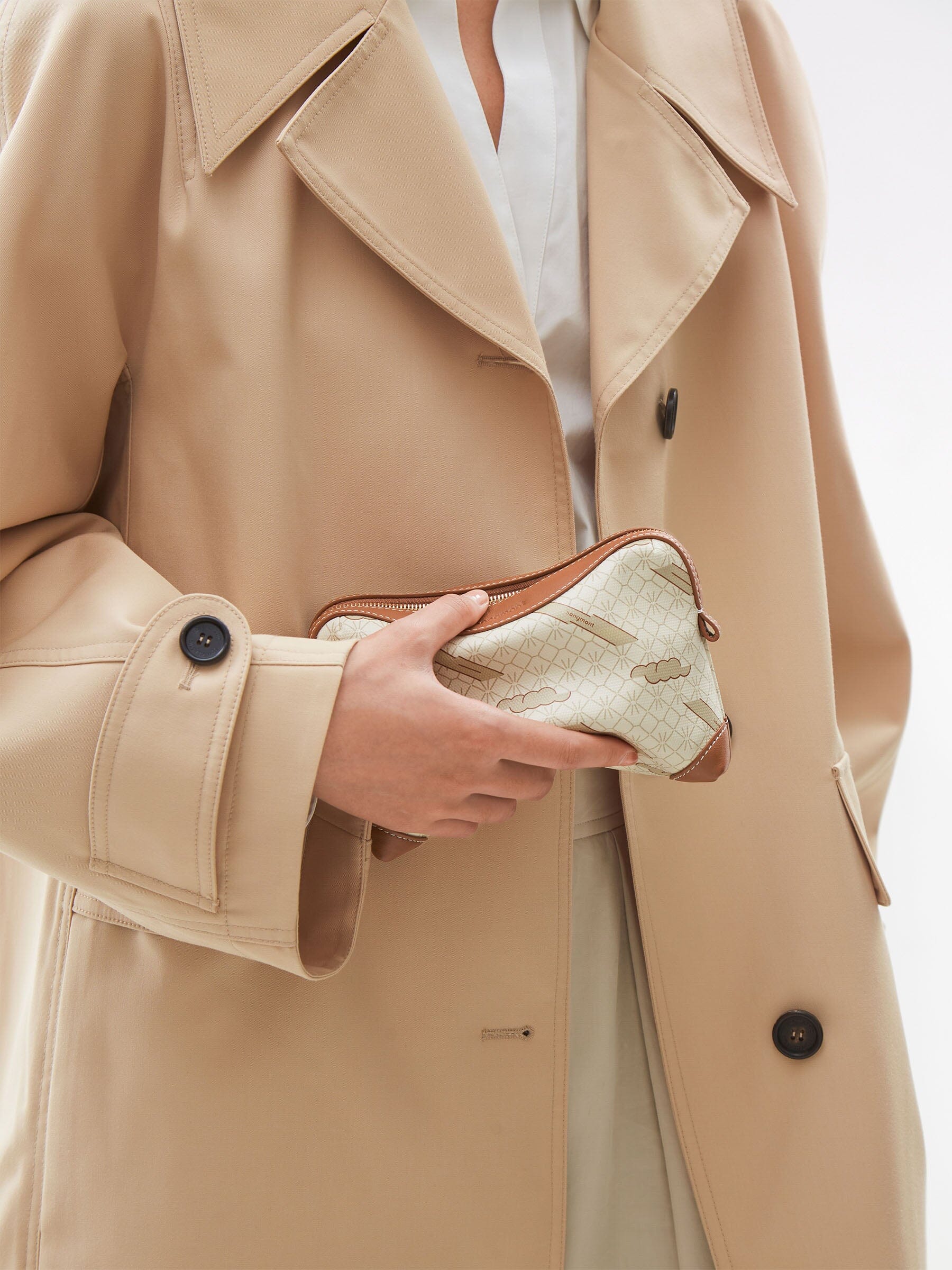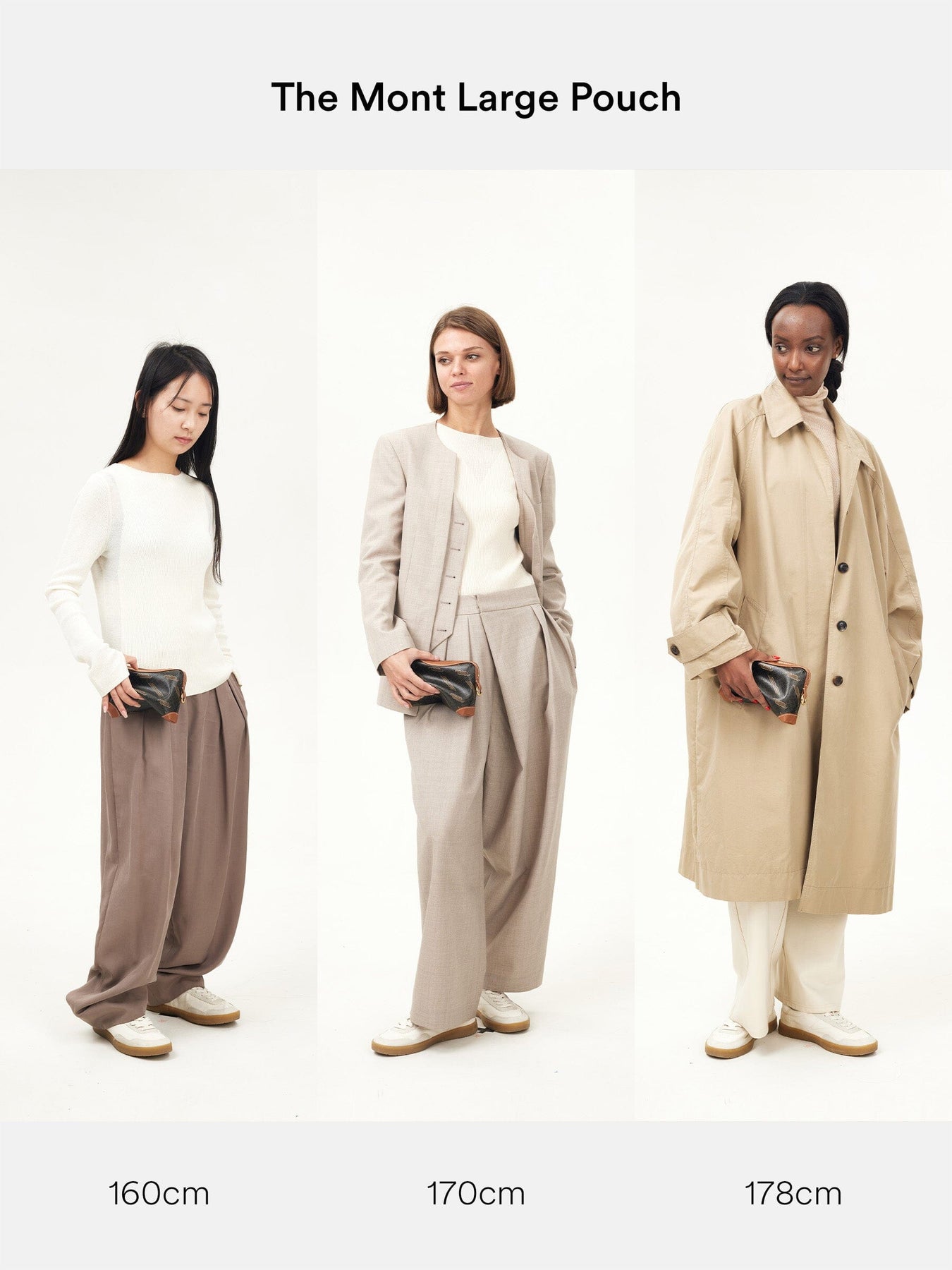 ラージモンポーチは、単独でスタイリッシュなクラッチとして使用することも、化粧ポーチやトイレタリーポーチとして仕事バッグや旅行バッグに持ち込むこともできます。利便性を提供し、身の回りのアイテムを整理するのに役立ち、服装全体に楽なスタイルを追加します。