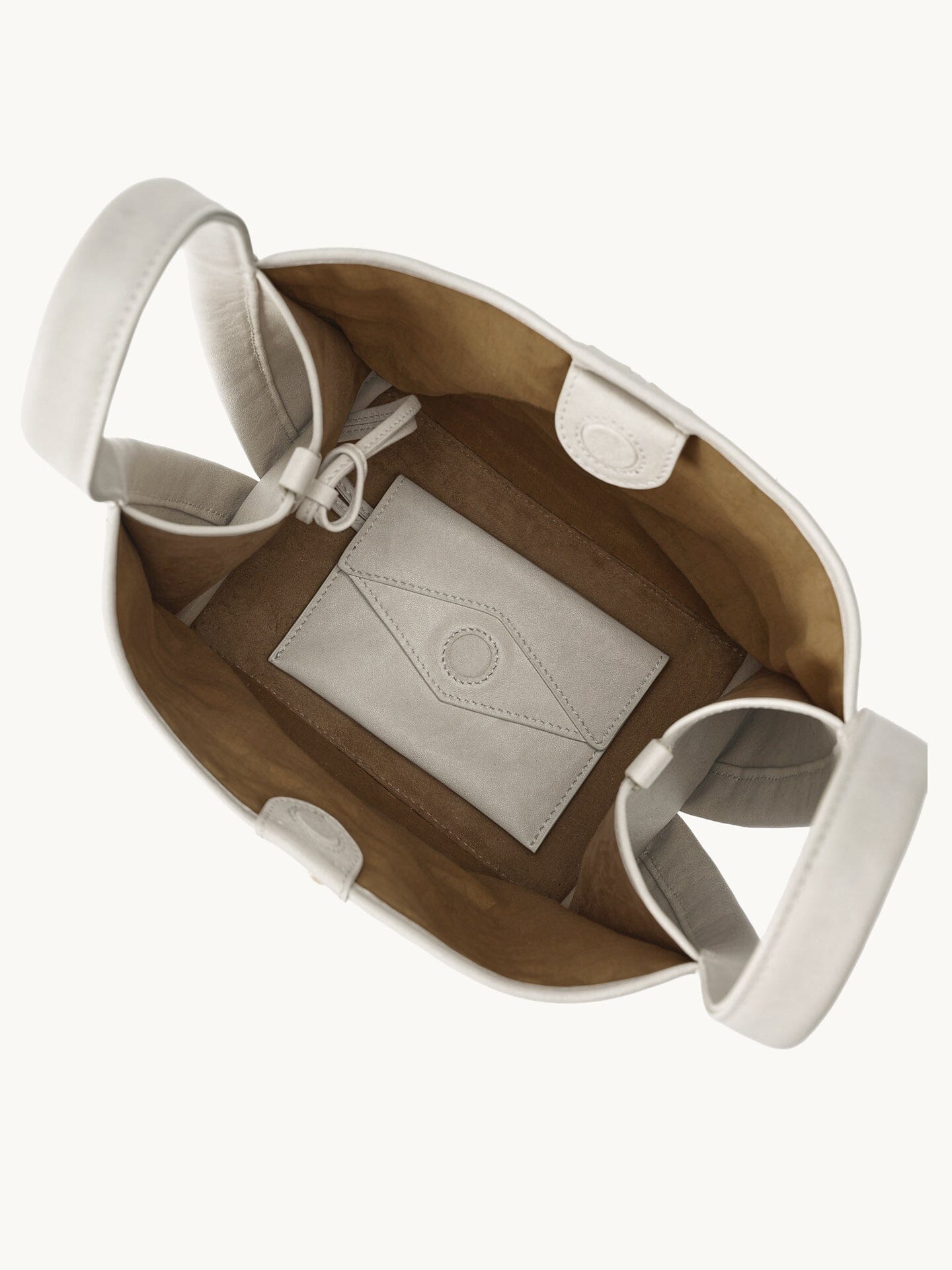 - 形や色を保つため、水、香水、化粧品との接触を避け、使用しないときは保存袋に立てて保管してください。それぞれのバッグは本革で作られており、時間の経過とともに独特の個性が生まれます。自然な経年変化により軽度の色移りが発生する可能性があるため、濃い色の生地とは避けて保管することをお勧めします。
