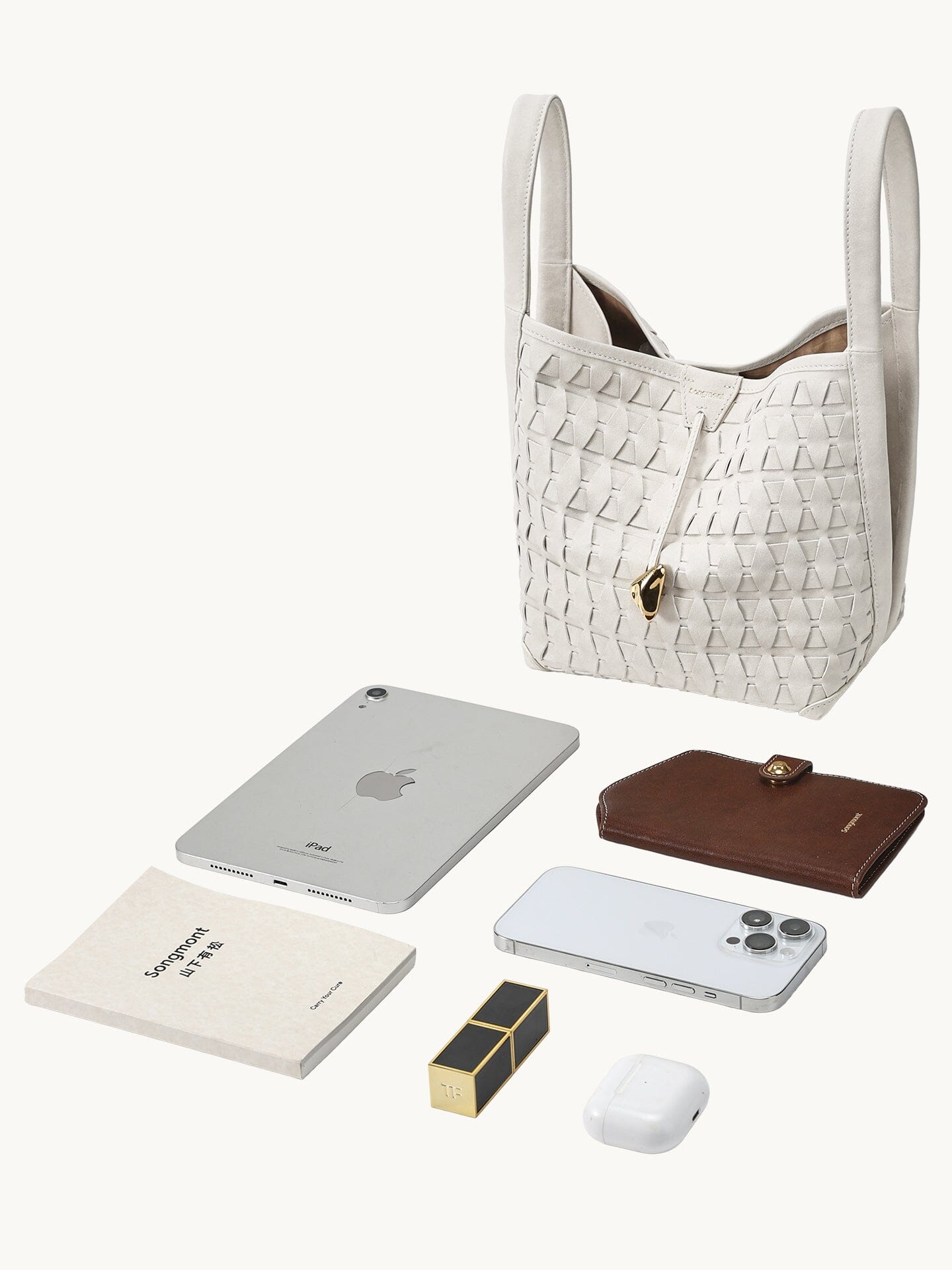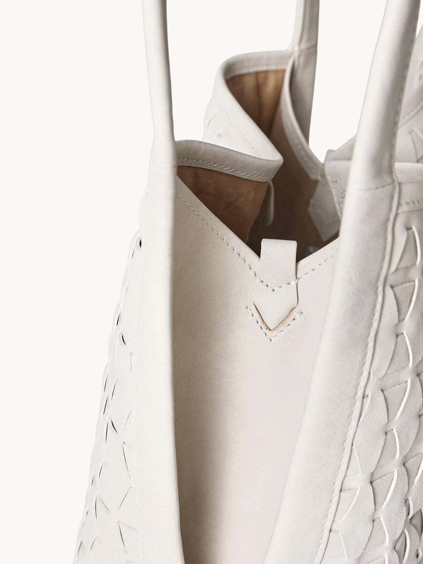 Through slit-and-weave technique, the Lattice Collection translates traditional geometric motifs into a refined woven leather design. Unlike bags assembled from multiple panels, our seamless, single-piece leather construction has no seams to split or glue to fail.