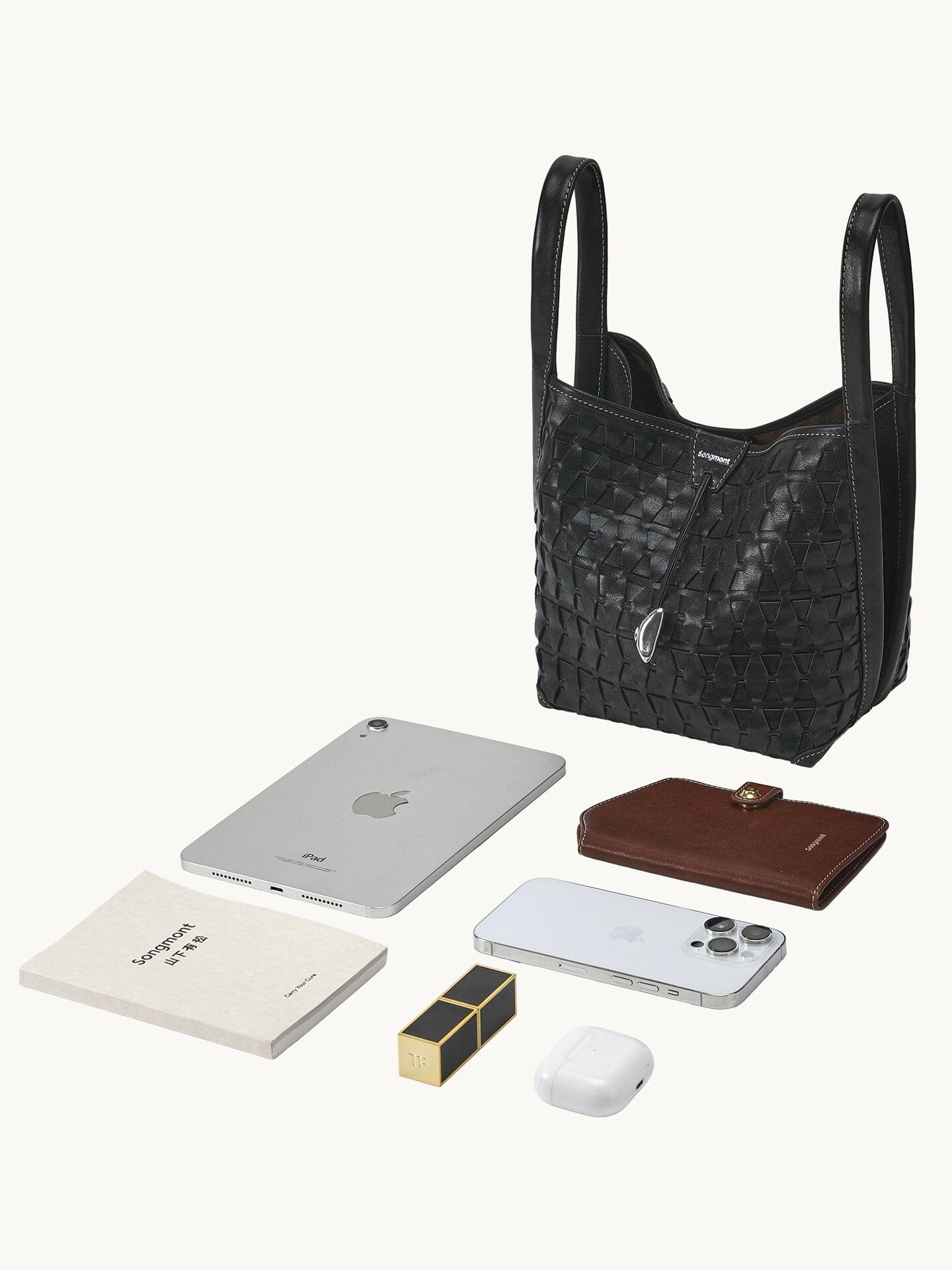 Through slit-and-weave technique, the Lattice Collection translates traditional geometric motifs into a refined woven leather design. Unlike bags assembled from multiple panels, our seamless, single-piece leather construction has no seams to split or glue to fail.