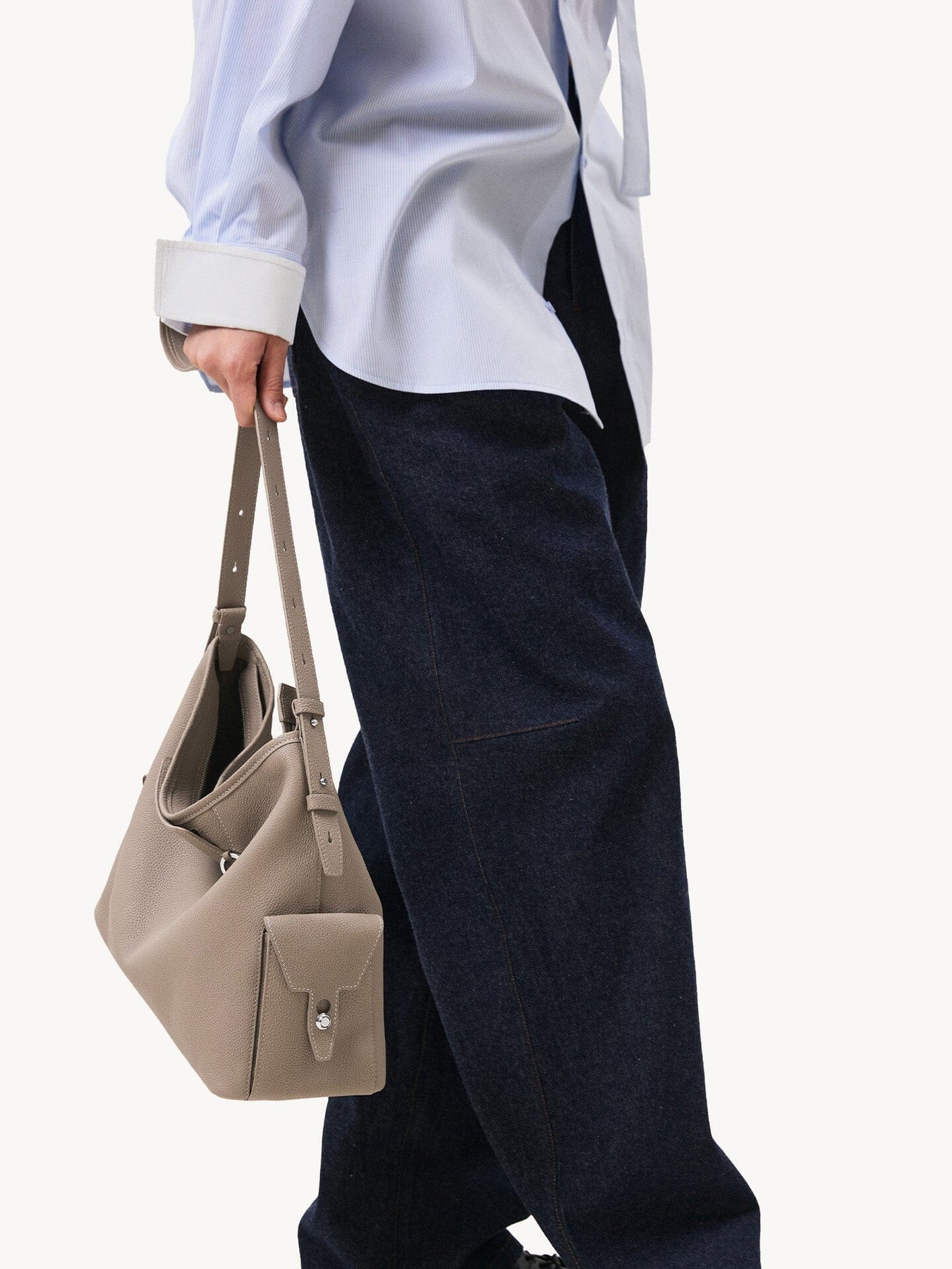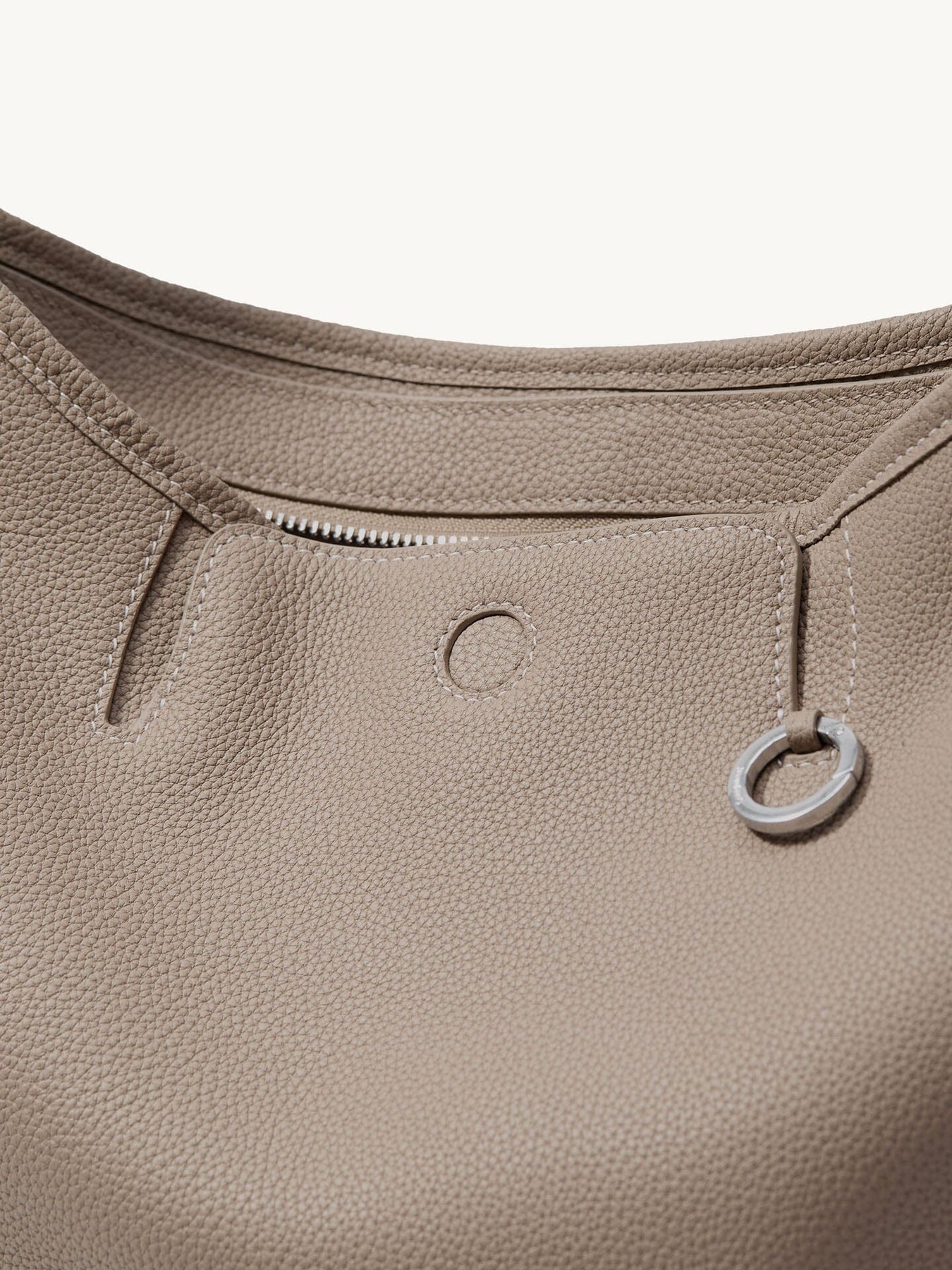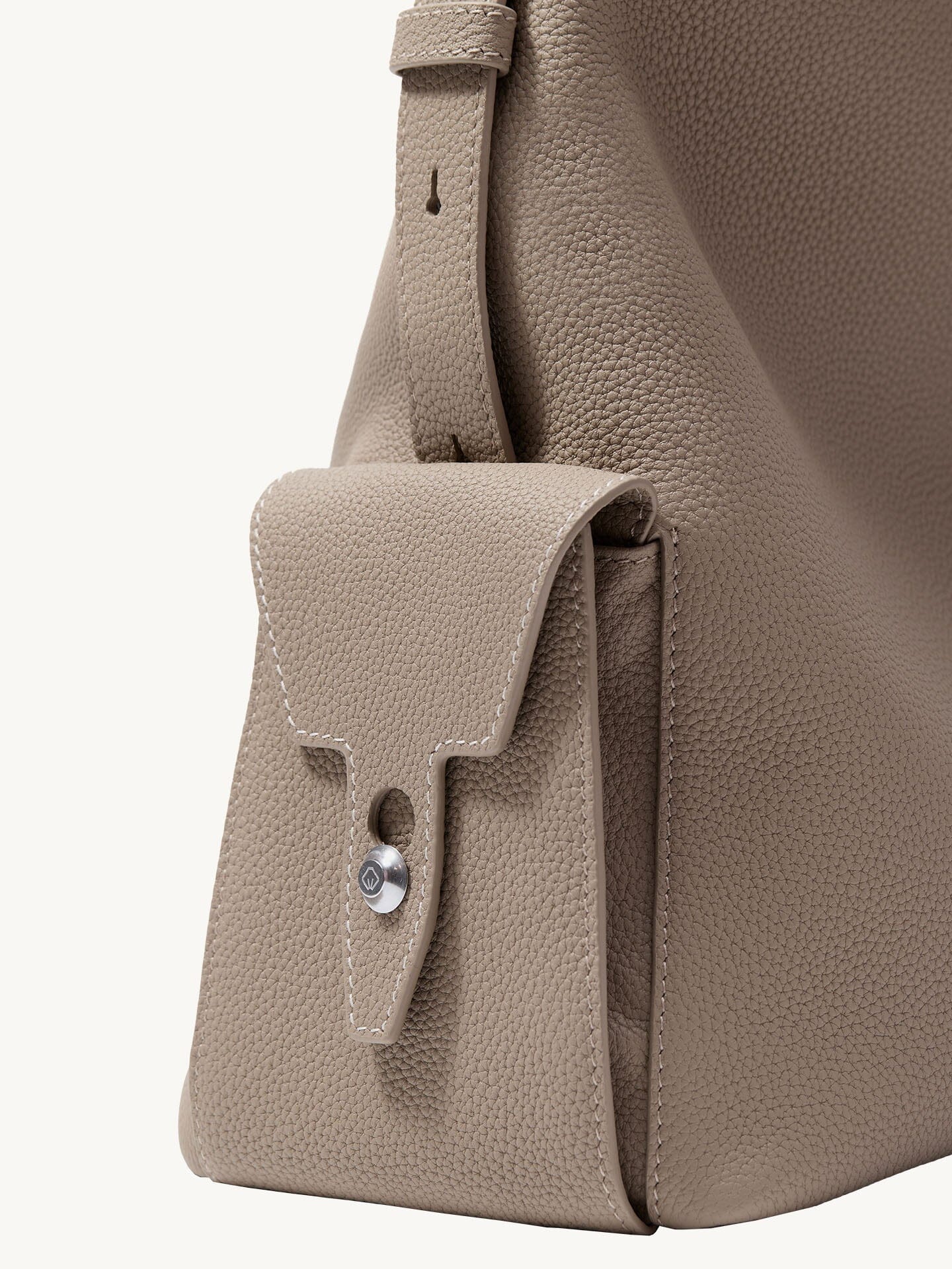 Made of full-grain tumbled leather, this Bag features multiple exterior patch pockets to keep your essentials. The charm holder allows you to attach any accessories you prefer. The bag includes a zipper closure and a spacious opening for easy visibility of contents. Inside, you'll find compartments for organized storage. The adjustable strap is designed to be wider and softer in the center for improved shoulder comfort.