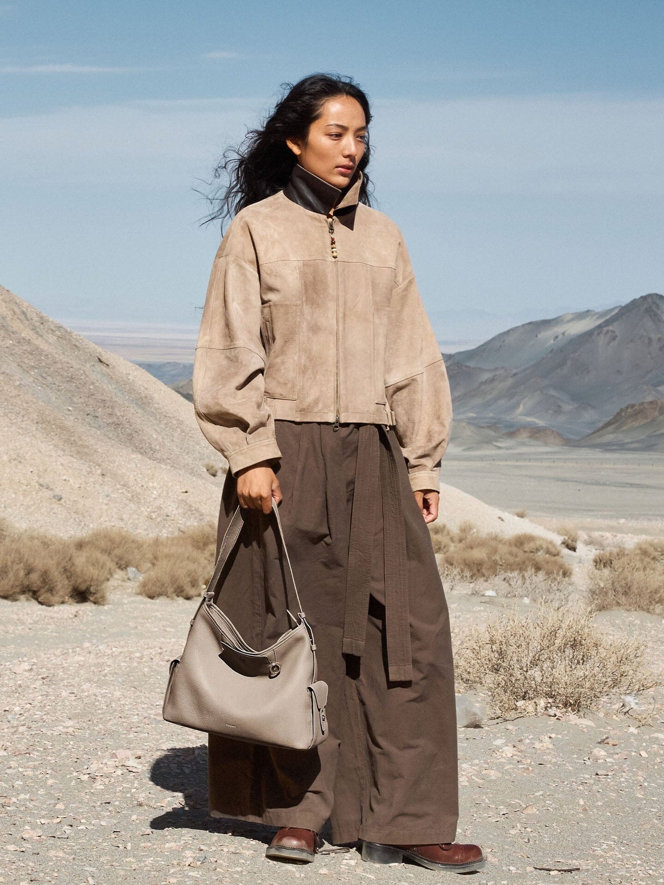 Carefully selected premium cowhide with a tumbled texture retains the natural pores and breathability of the material. Its grain is even and delicate, resistant to scratches, while growing softer and developing a rich, glossy patina over time.