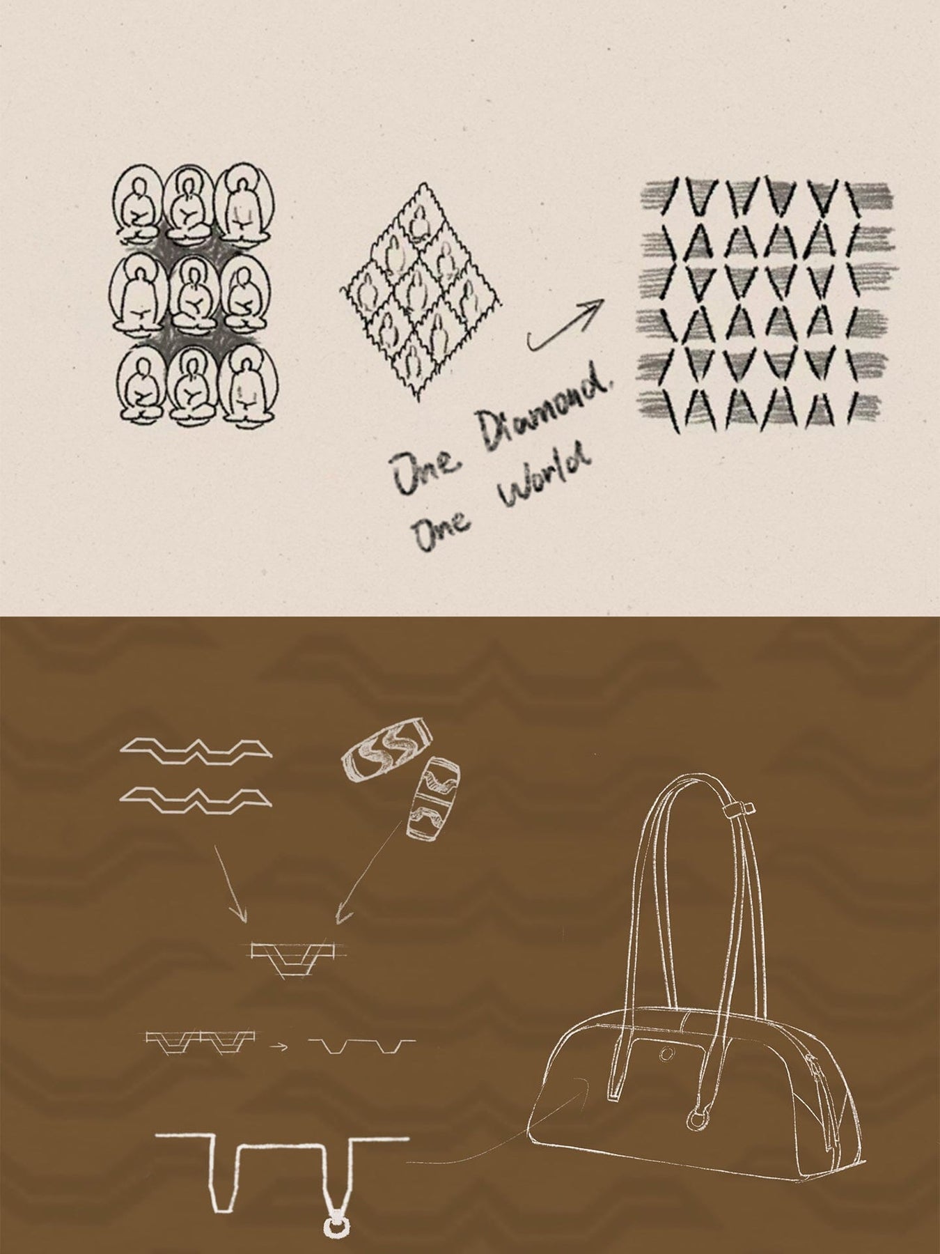在循迹系列虎元素的基础上,枕头包又在细节处加入了菱格设计,每个菱格就是一个小型世界,可以接纳多面的你,填装你自己的故事。
