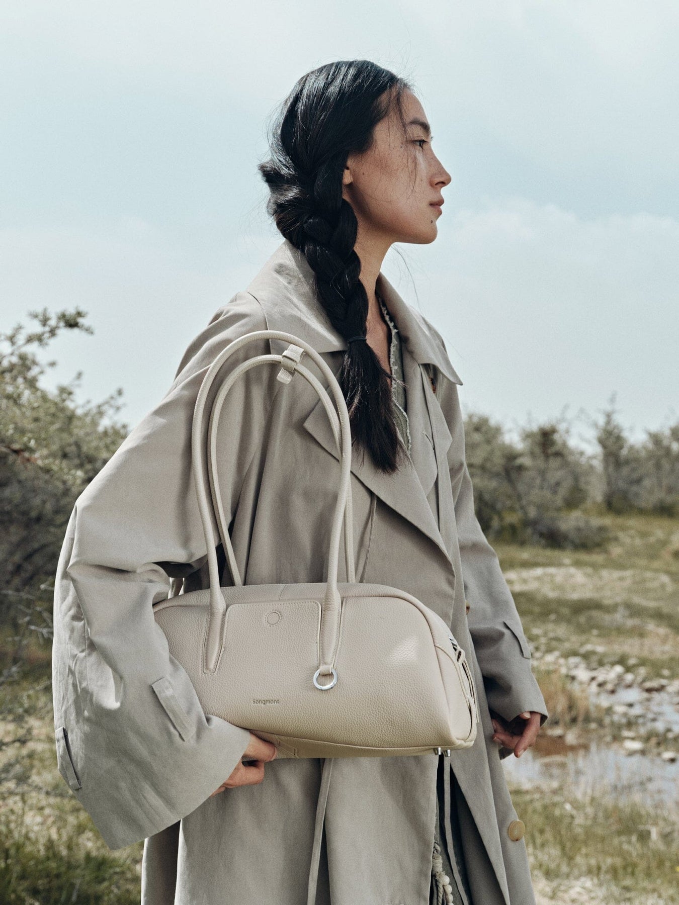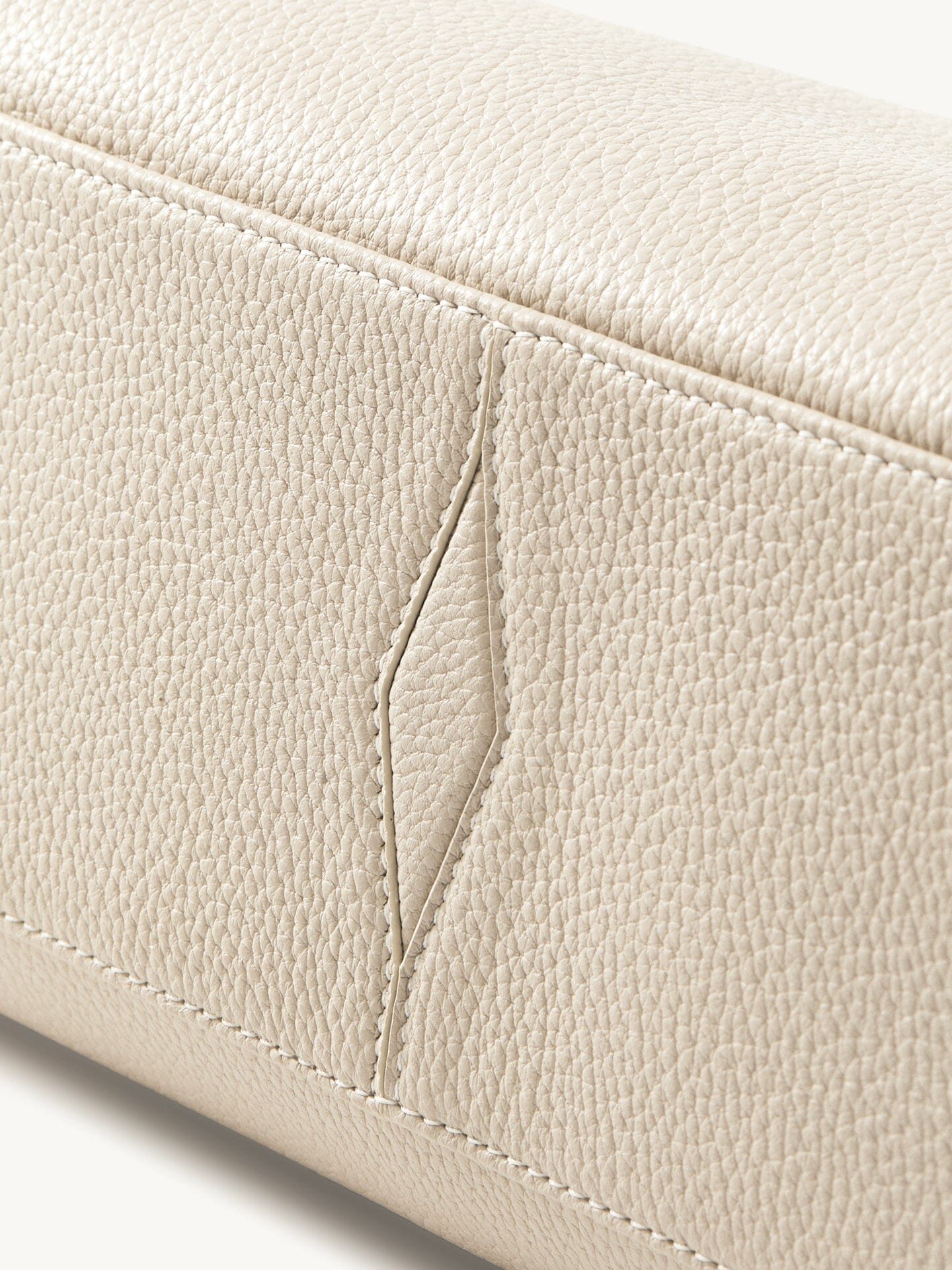 皎玉白循迹枕头包采用全粒面头层摔纹牛皮制成。随着时间的推移,皮革会优雅地老化,逐渐形成每个手袋独有的光泽外观。